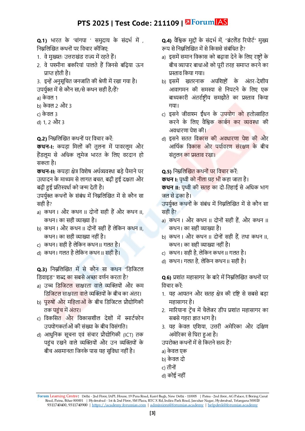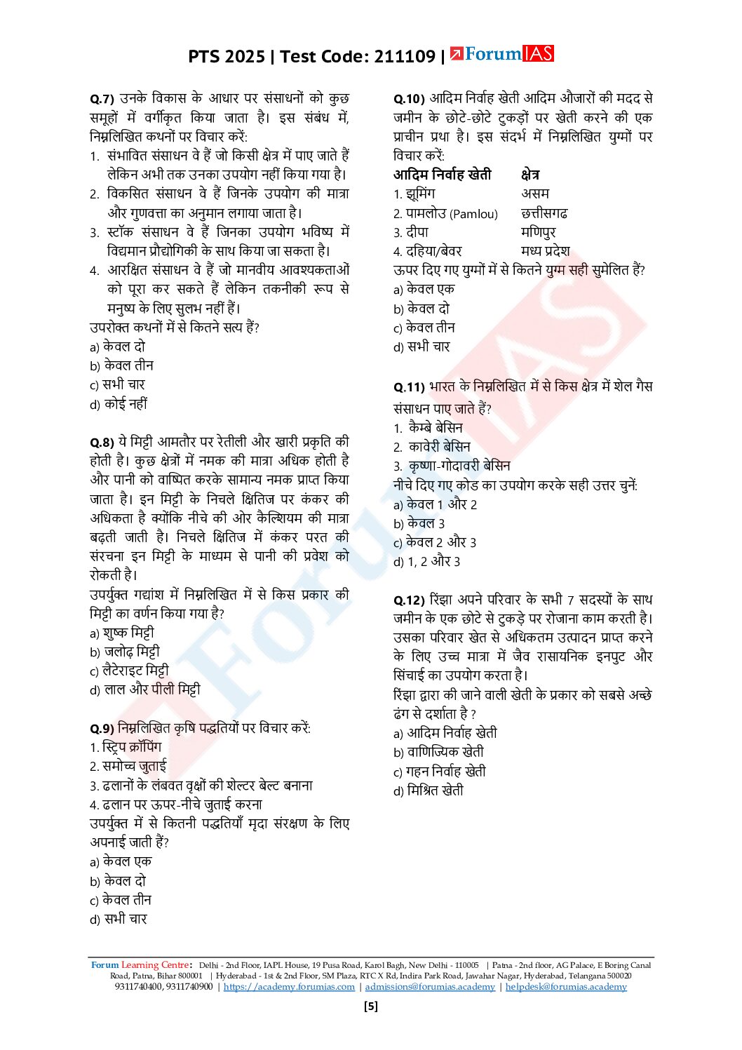 FORUM IAS HINDI 2025 TEST-9 (L1 TEST-9) GEOGRAPHY & AGRICULTURE 2025 FINAL (HINDI) {BLACK AND WHITE)