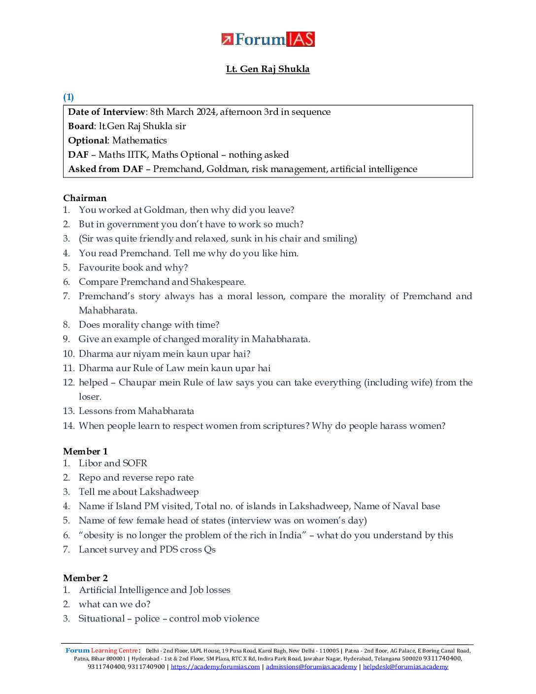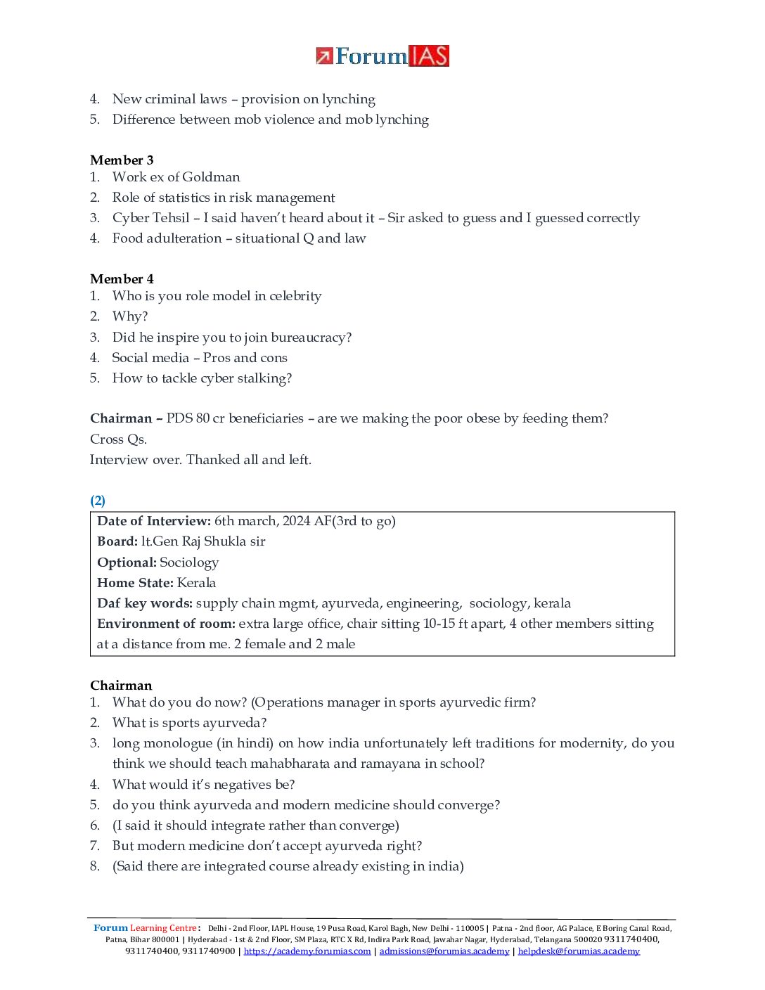 / FORUM IAS INTERVIEW TRANSCRIPTS CSE 2024 FINAL (ENGLISH) {BLACK AND WHITE}