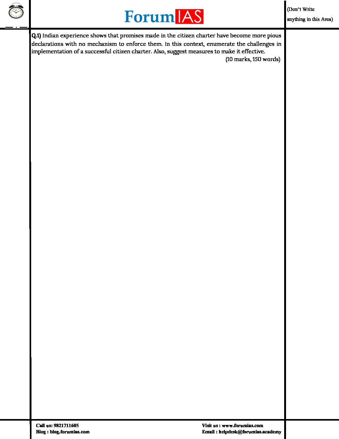 FORUM IAS MGP -2022- (COHORT-1) –HALF LENGTH- (TEST CODE-51004) -TEST-4 QUESTION –CUM- ANSWERS BOOKLET (BLACK & WHITE)