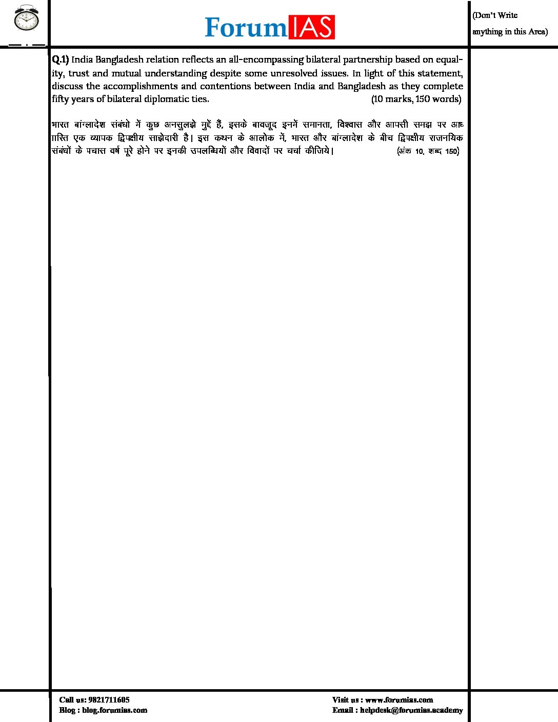 / FORUM IAS MGP -2022- (COHORT-1) –HALF LENGTH- (TEST CODE-51006) -TEST-6 QUESTION –CUM- ANSWERS BOOKLET (BLACK & WHITE)