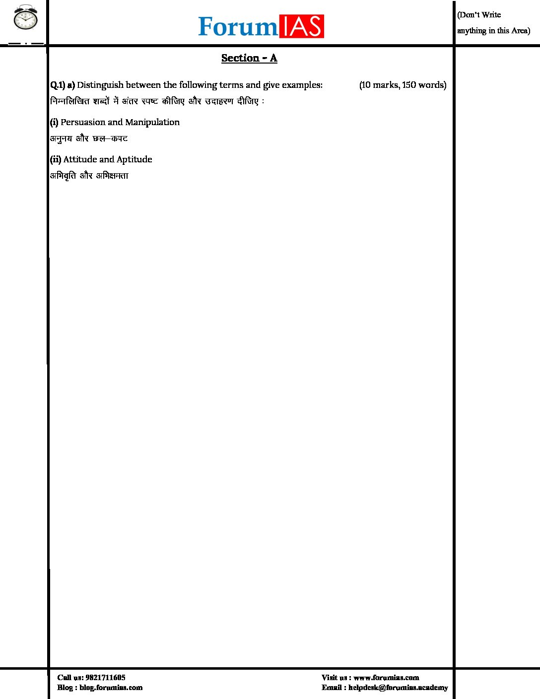 / FORUM IAS MGP -2022- (COHORT-1) –HALF LENGTH- (TEST CODE-51009) -TEST-8 QUESTION –CUM- ANSWERS BOOKLET (BLACK & WHITE)