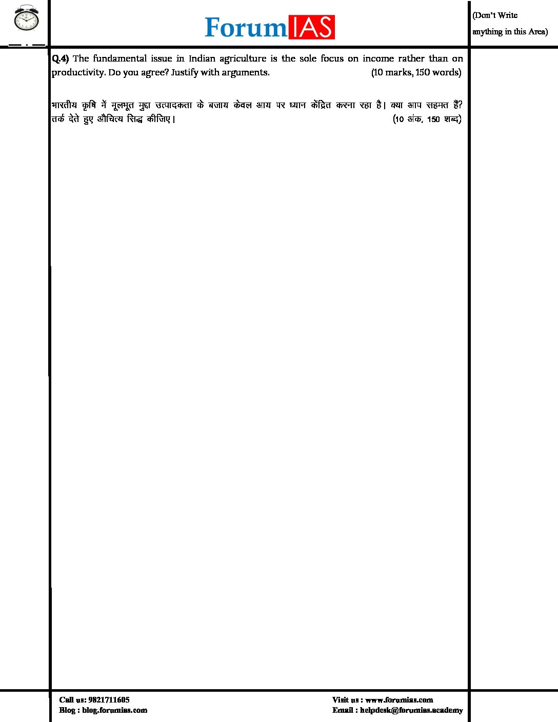 / FORUM IAS MGP -2022- (COHORT-1) –HALF LENGTH- (TEST CODE-51013) -TEST-11 QUESTION –CUM- ANSWERS BOOKLET (BLACK & WHITE)