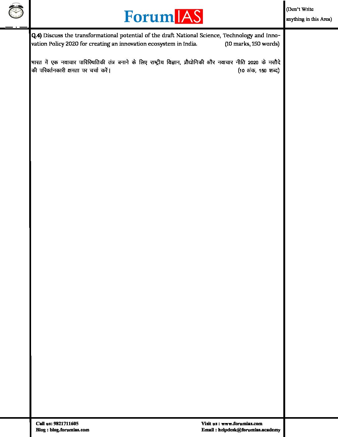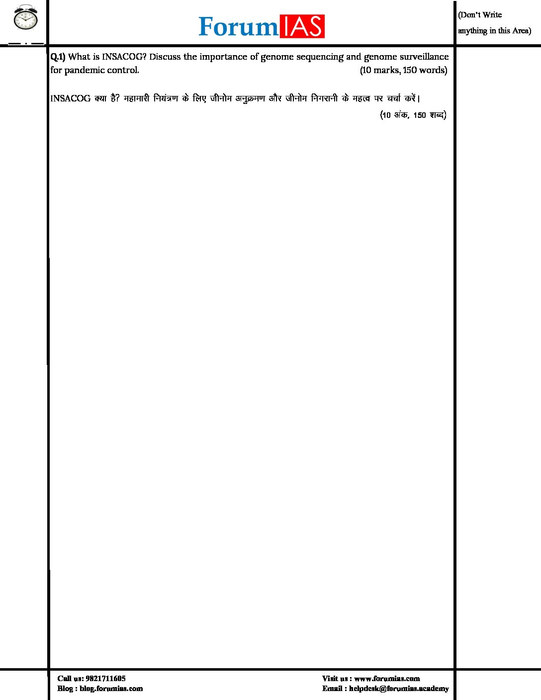 / FORUM IAS MGP -2022- (COHORT-1) –HALF LENGTH- (TEST CODE-51015) -TEST-13 QUESTION –CUM- ANSWERS BOOKLET (BLACK & WHITE)