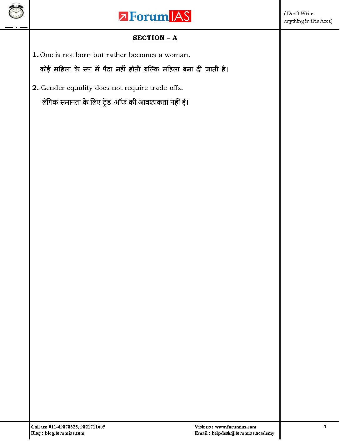 FORUM IAS MGP 2023 COHORT 1 QCA ESSAY TEST-1-QUESTION-CUM ANSWERS BOOKLETS (QCA) (BLACK & WHITE)