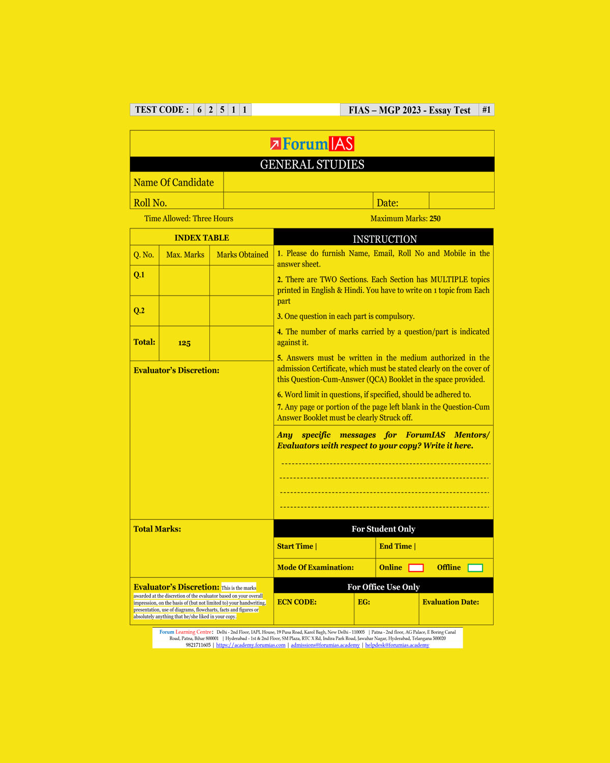 / FORUM IAS MGP 2023 COHORT 1 QCA ESSAY TEST-1 TEST-2 QUESTION-CUM ANSWERS BOOKLETS (QCA) (BLACK & WHITE) GROUPED