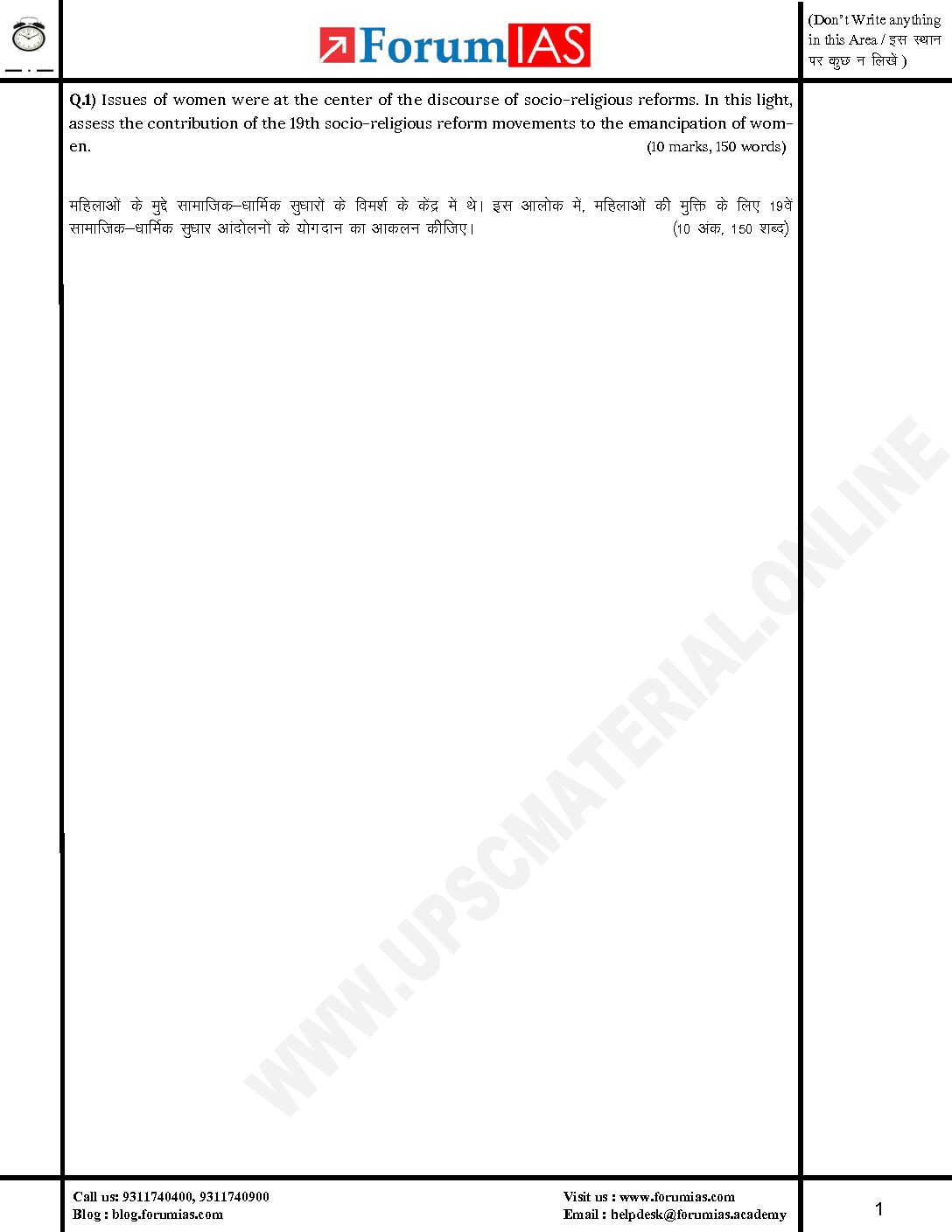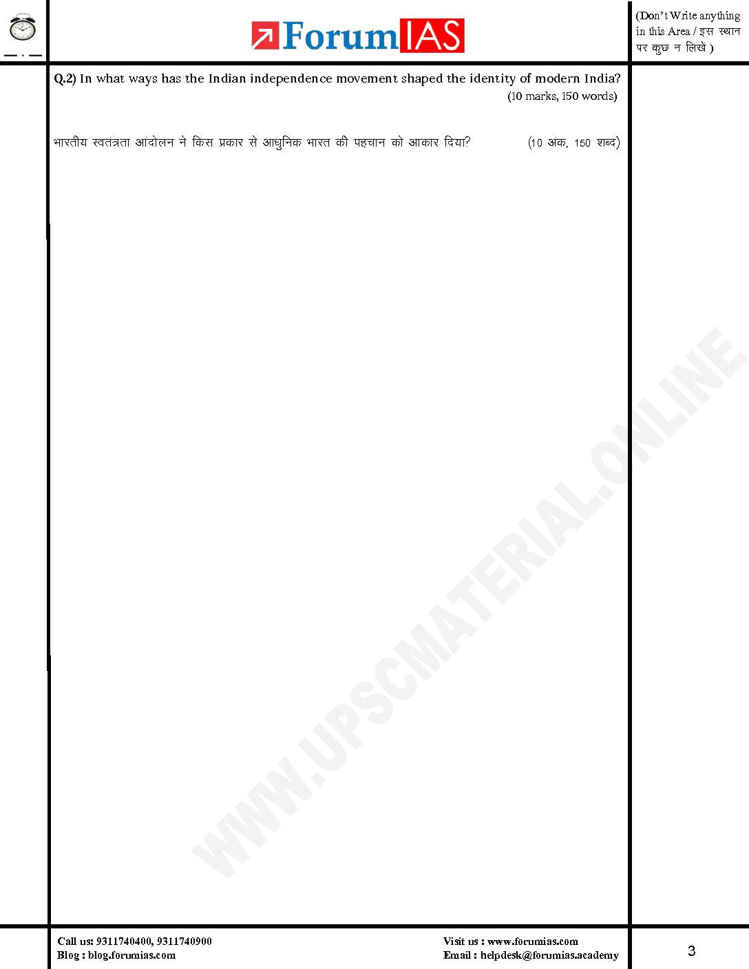 FORUM IAS MGP 2024 QCA HALF LENGTH TEST-02 ANSWER BOOKLET (BLACK & WHITE)