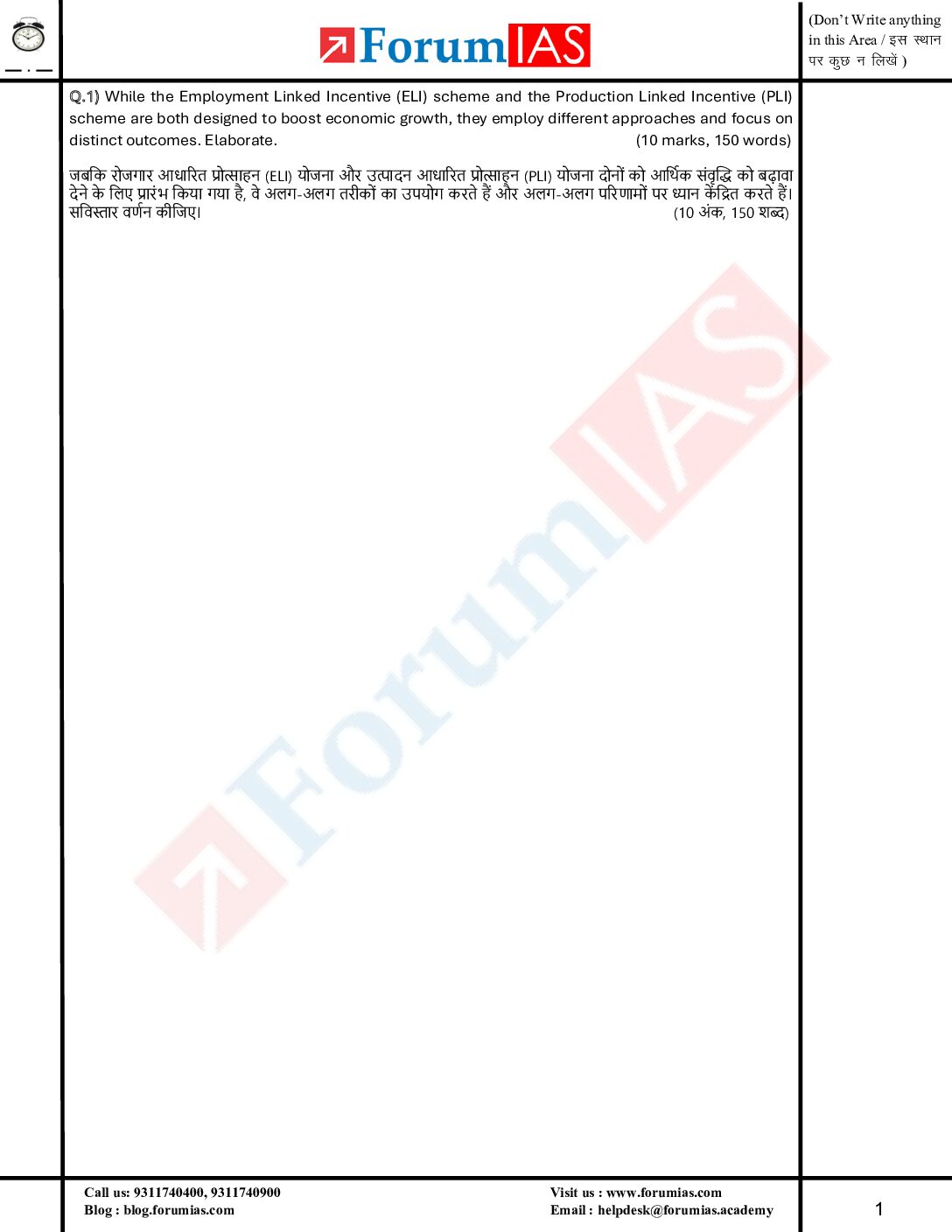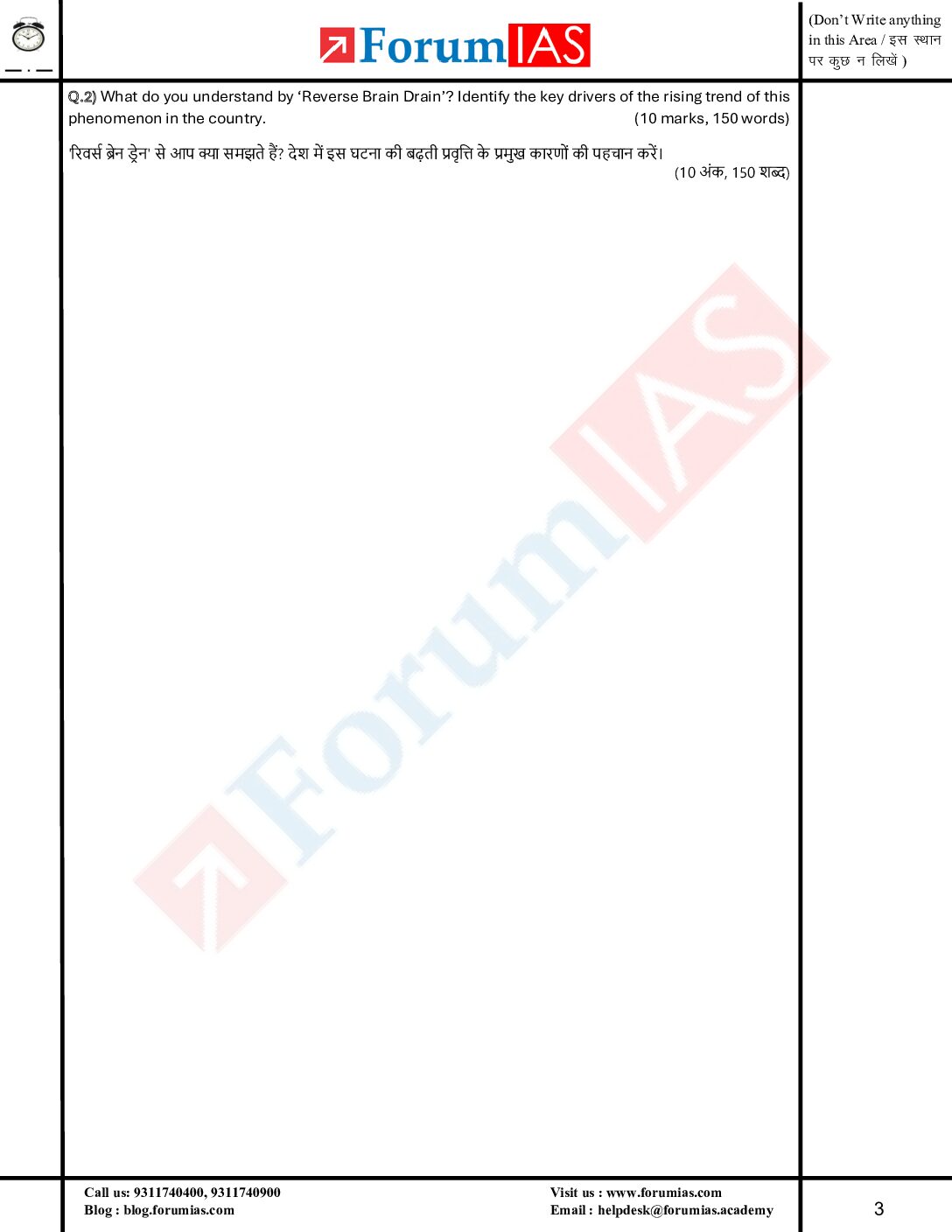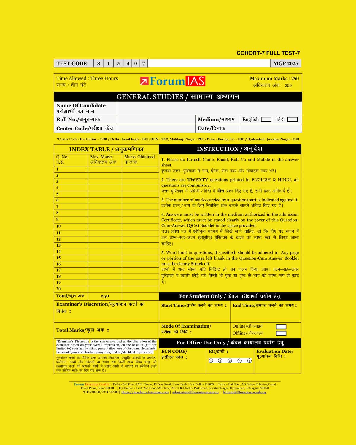 FORUM IAS MGP (COHORT-7) 2025 QUESTION CUM ANSWER BOOKLET FULL LENGTH TEST-7-QCA FINAL (ENGLISH & HINDI) {BLACK AND WHITE}