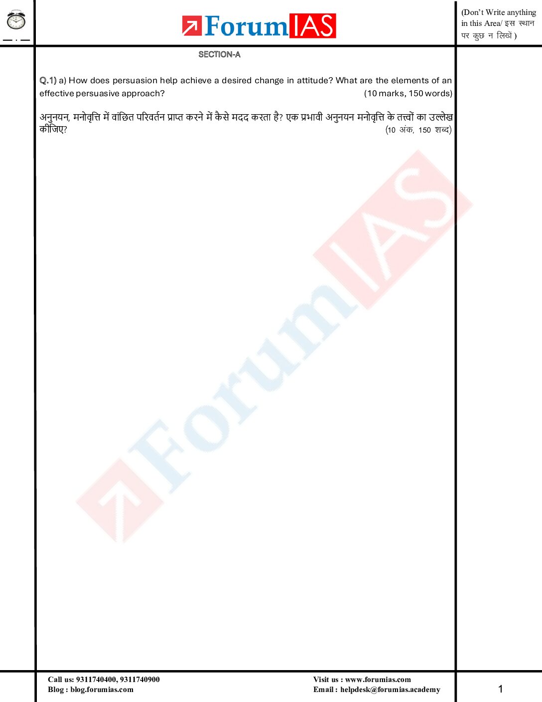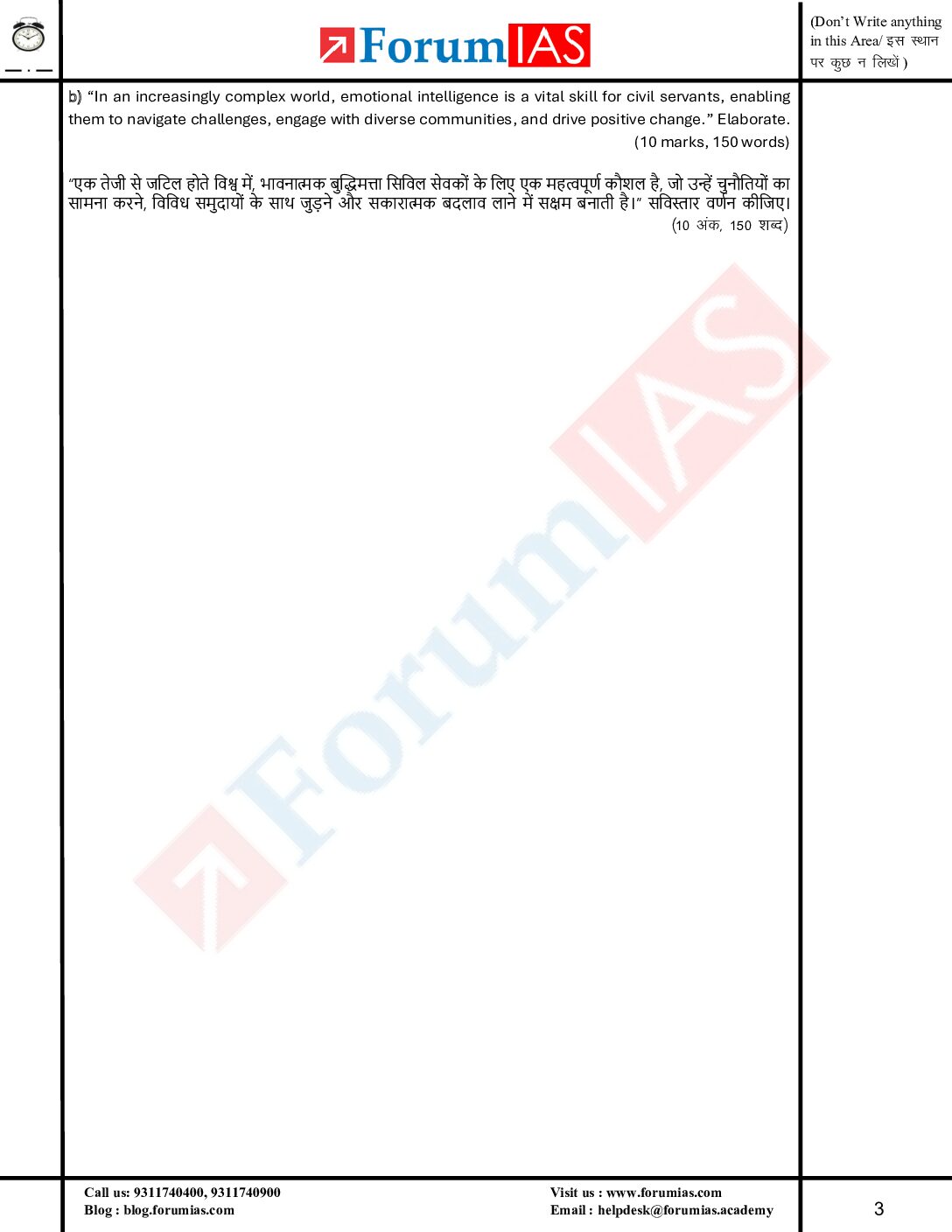 FORUM IAS MGP (COHORT-7) 2025 QUESTION CUM ANSWER BOOKLET HALF LENGTH TEST-18-QCA FINAL (ENGLISH & HINDI) {BLACK AND WHITE}