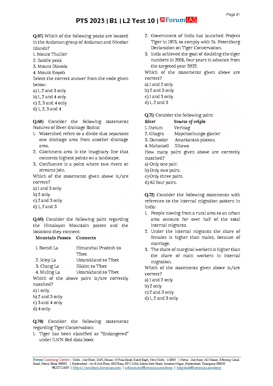 FORUM IAS PTS 2023 BATCH1 TEST-10 BATCH-1 LEVEL-2 GS PAPER 1 (BLACK & WHITE)