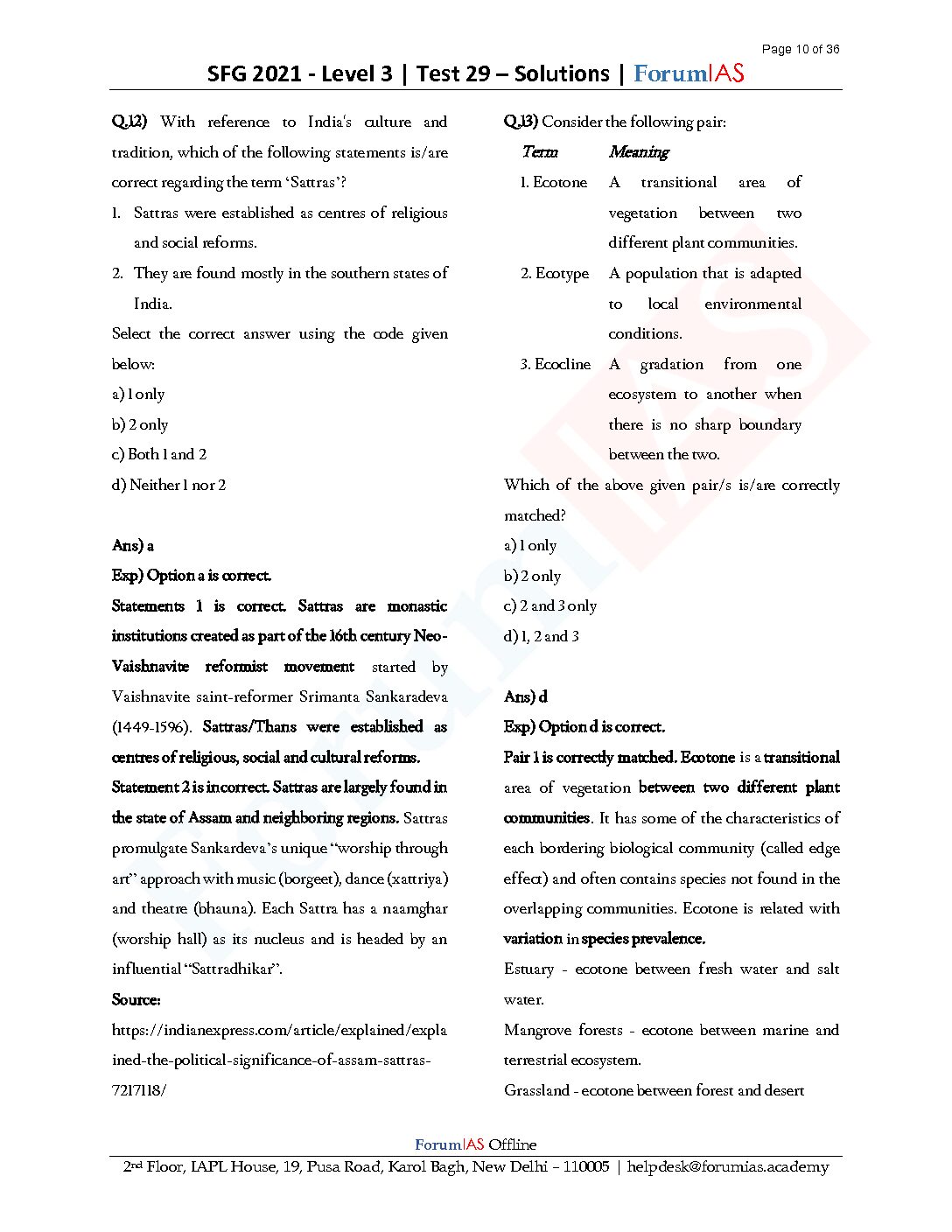 FORUM IAS SFG LEVEL – 3 – TEST – 29 (2021)