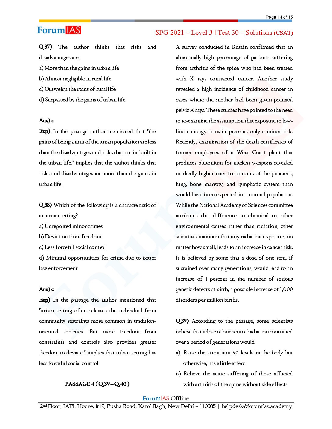 / FORUM IAS SFG LEVEL – 3 – TEST – 30 – CSAT (2021)