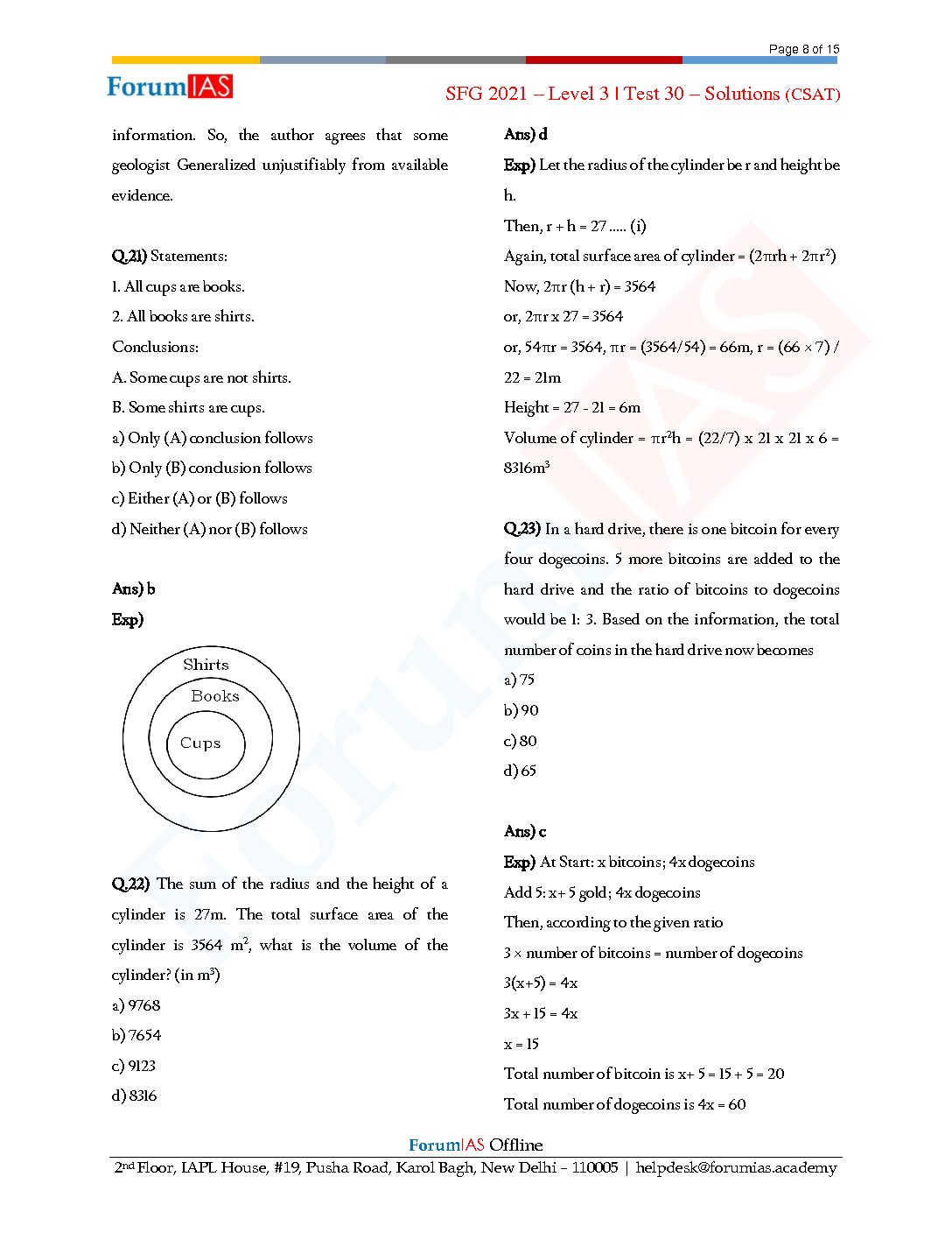 FORUM IAS SFG LEVEL – 3 – TEST – 30 – CSAT (2021)