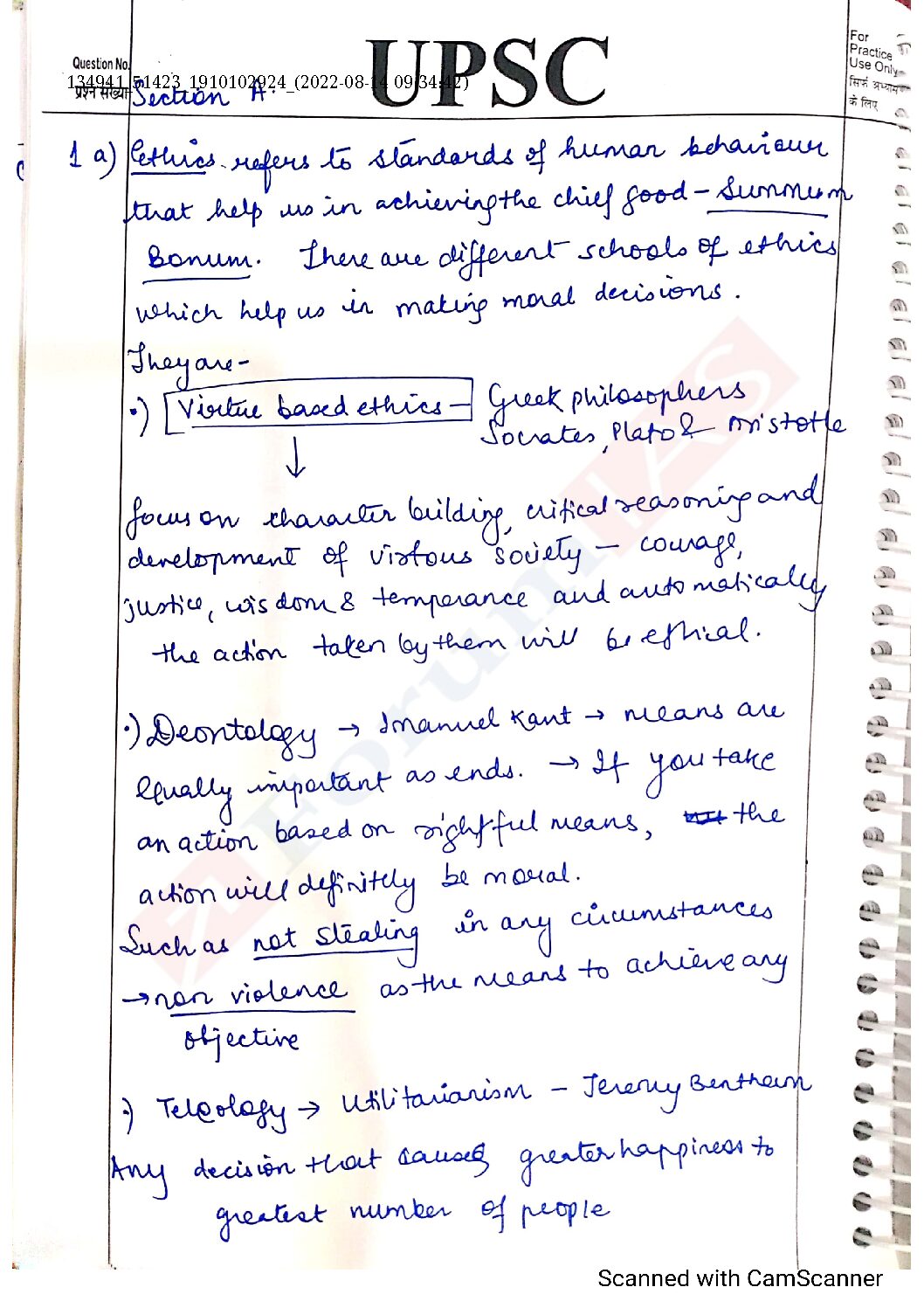 / FORUM IAS TOPPERS COPIES ETHICS (GS PAPER-IV) TOPPER’S COPY BY GARIMA LOHIA RANK-2 CSE 2022 ENGLISH MEDIUM 2022 (BLACK & WHITE)