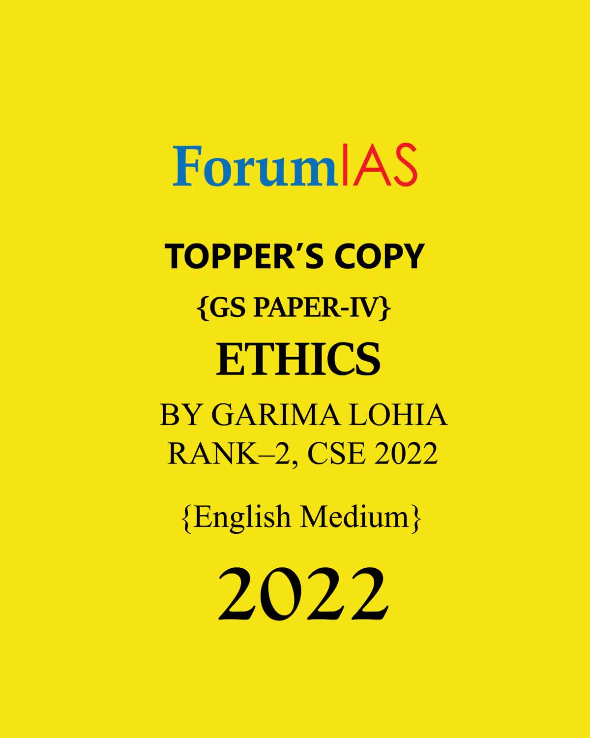 FORUM IAS TOPPERS COPIES ETHICS (GS PAPER-IV) TOPPER’S COPY BY GARIMA LOHIA RANK-2 CSE 2022 ENGLISH MEDIUM 2022 (BLACK & WHITE)