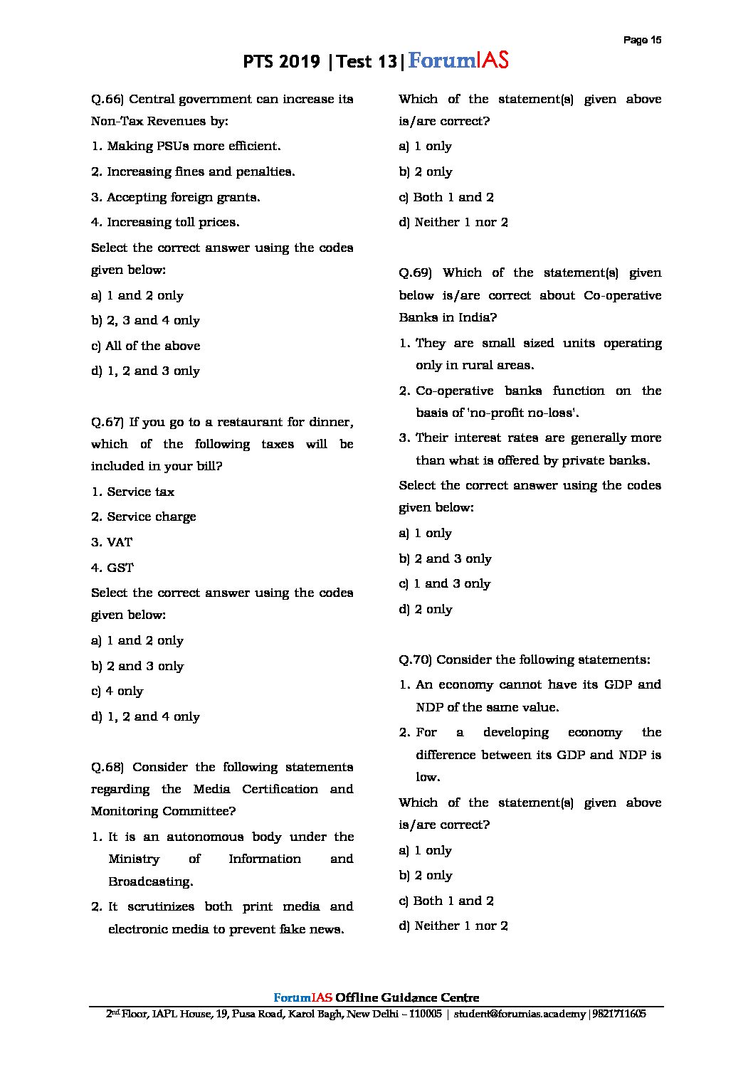 / FORUM PT TEST-13 WITH SOLUTION ECONOMICS (2019)