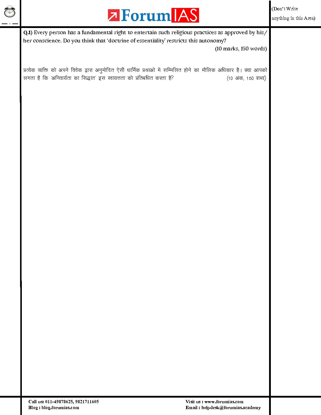 / FORUMIAS 2022 (COHORT-1) QCA TEST-2 (51234) QUESTION CUM ANSWERS BOOKLET (QCA) (BLACK & WHITE)