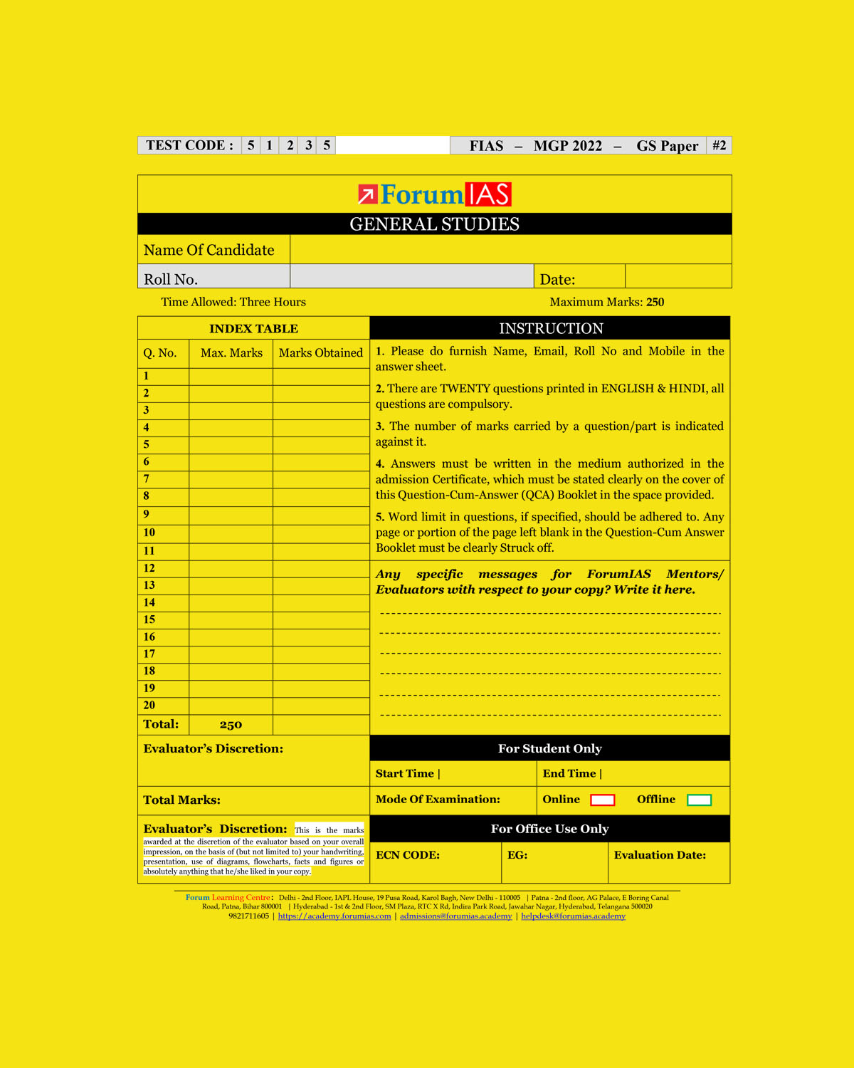 / FORUMIAS 2022 COHORT-1) QCA TEST-2 (TEST CODE-51235) QUESTION CUM ANSWERS BOOKLET (QCA) (BLACK & WHITE)