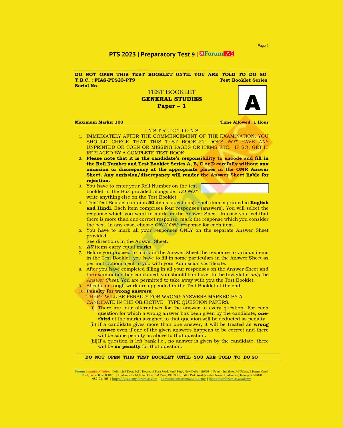 / FORUMIAS 2023 BATCH-1 PT PREPARATORY TEST-9 (BLACK & WHITE)