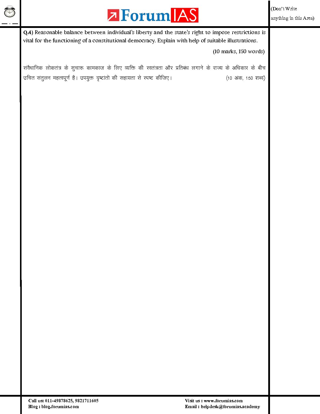 / FORUMIAS 2023 MGP COHORT 1 QCA TEST-1 (TESTCODE 61330) (FULL LENGTH) QUESTION CUM ANSWER BOOKLETS (QCA) (BLACK & WHITE)