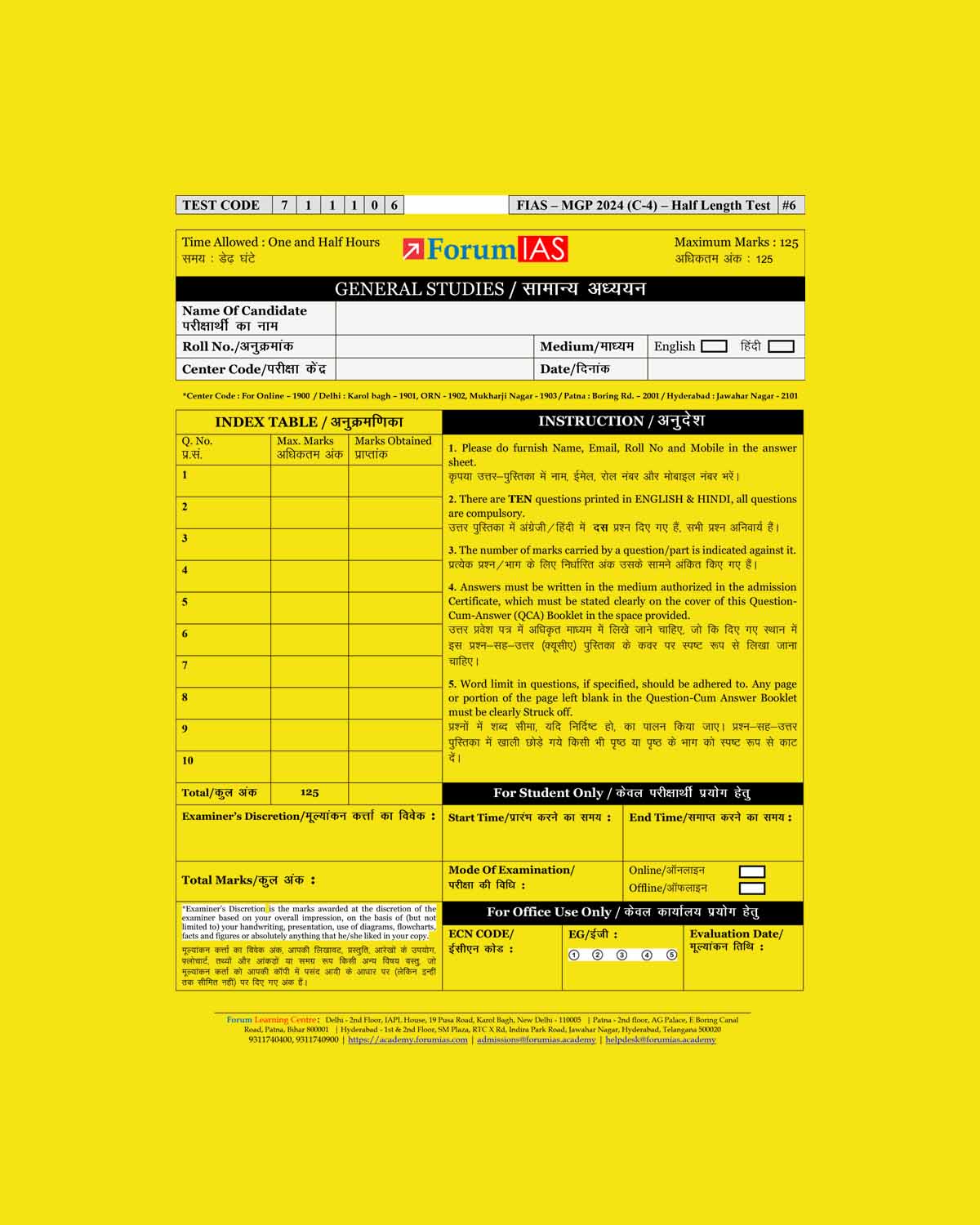 / FORUMIAS 2024 MGP COHART-4 QUESTION CUM ANSWER BOOKLETS HALF LENGTH TEST-6 ANSWERS BOOKLET 2024 FINAL {ENGLISH} {BLACK AND WHITE}