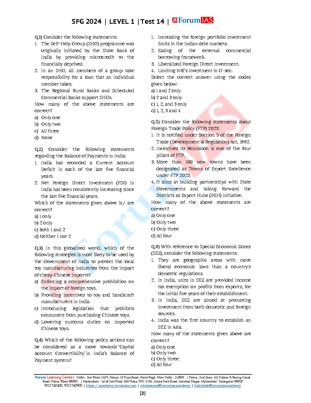 / FORUMIAS 2024 SFG LEVEL-1 TEST-14 TO 16 2024 FINAL {ECONOMY} ENGLISH {BLACK AND WHITE}