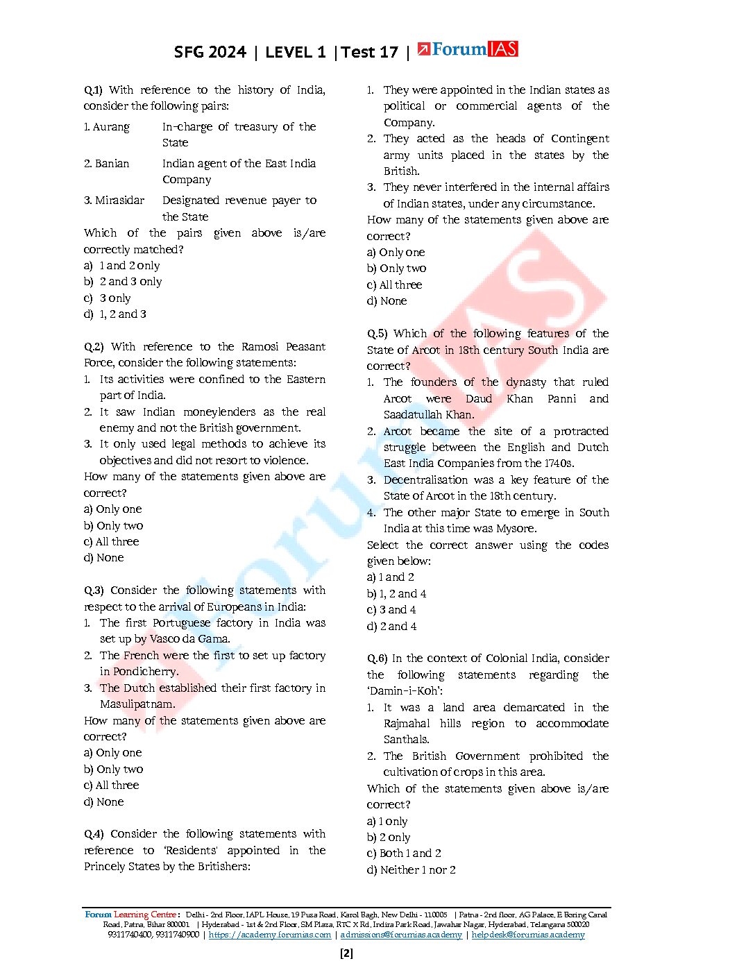 / FORUMIAS 2024 SFG LEVEL-1 TEST-17 TO 20 2024 FINAL {MODERN HISTORY} ENGLISH {BLACK AND WHITE}