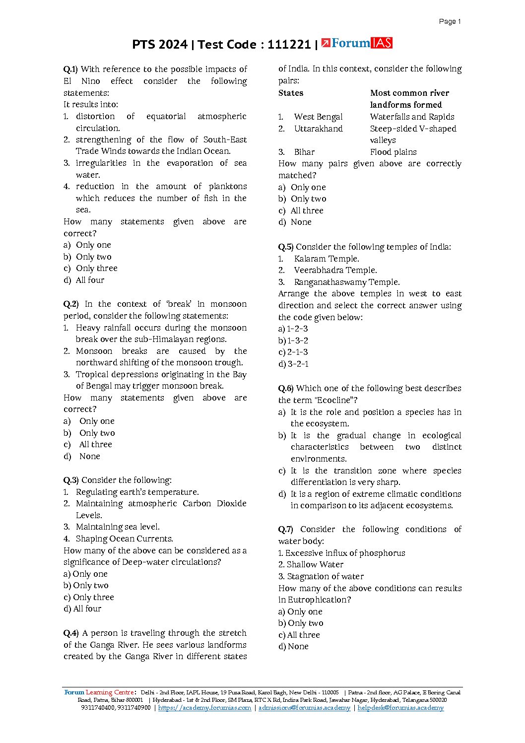 / FORUMIAS 2024 TEST-33 L-3 TEST-4 GEOGRAPHY & ENVIRONMENT FULL LENGTH TEST 2024 FINAL {ENGLISH} {BLACK AND WHITE}
