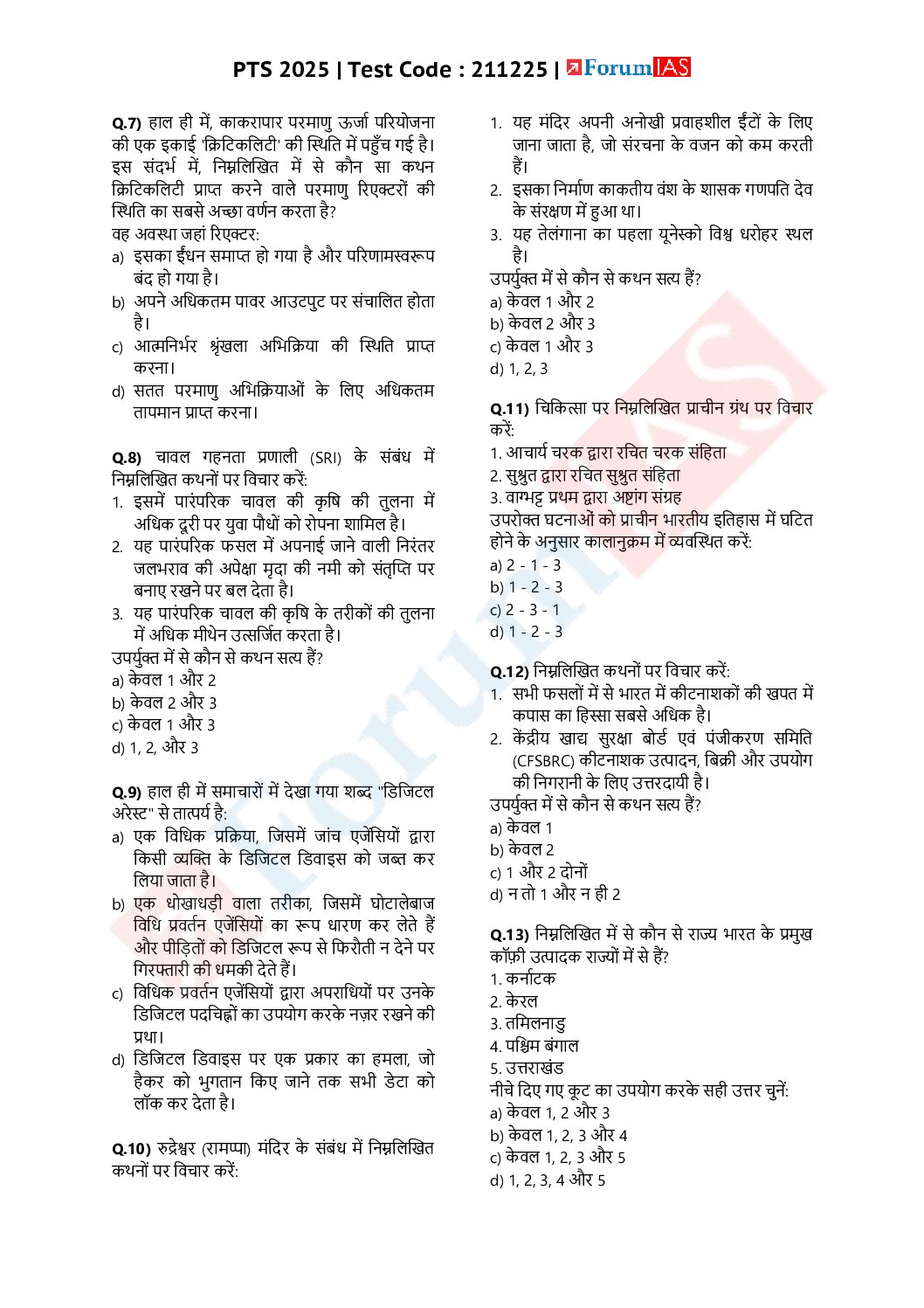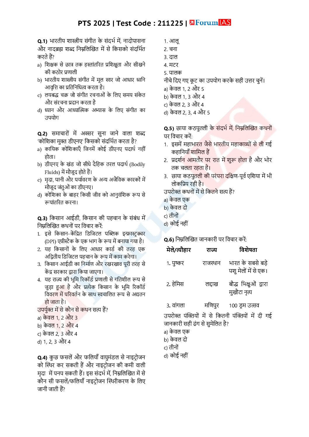 / FORUMIAS HINDI 2025 TEST-34 (L3 TEST-4) ART & CULTURE AND SCIENCE&TECHNOLOGY 2025 FINAL HINDI {BLACK AND WHITE}