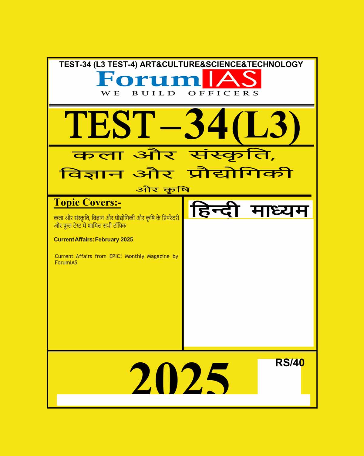 FORUMIAS HINDI 2025 TEST-34 (L3 TEST-4) ART & CULTURE AND SCIENCE&TECHNOLOGY 2025 FINAL HINDI {BLACK AND WHITE}