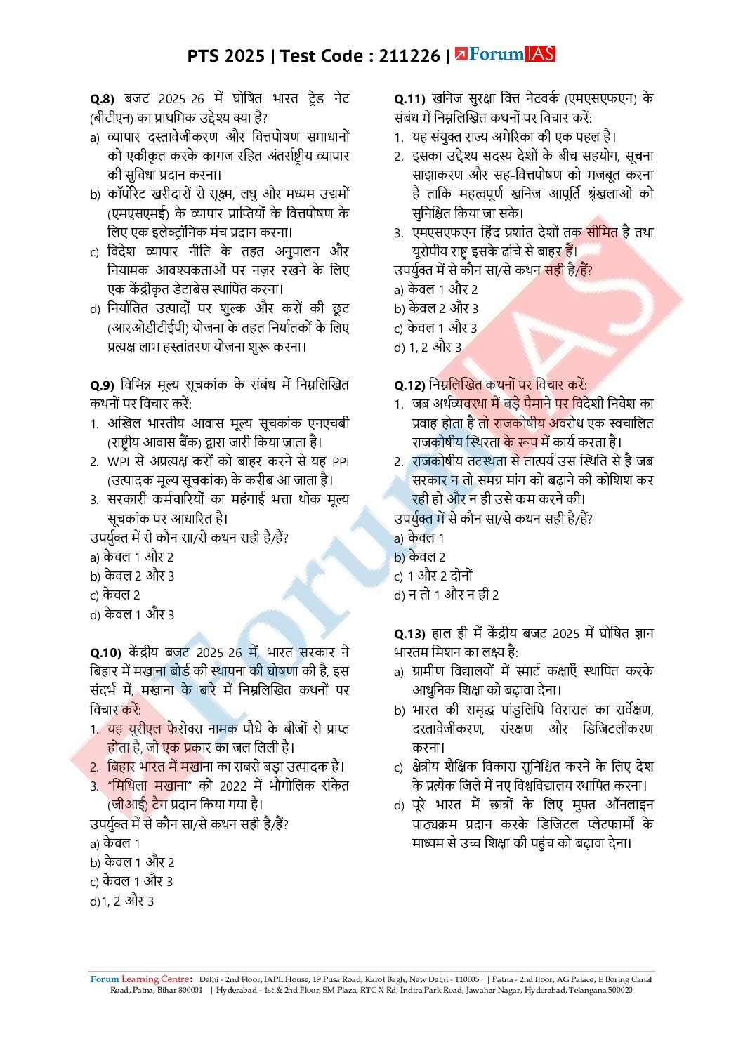 / FORUMIAS HINDI 2025 TEST-35 (L3 TEST-5) ECONOMIC SURVEY & BUDGET & INTERNATIONAL RELATIONS 2025 FINAL HINDI {BLACK AND WHITE}