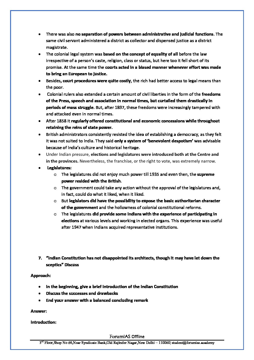 FORUM IAS MAINS GUIDANCE PROGRAM 2020 BATCH E TEST (1-6) 2020 BLACK & WHITE