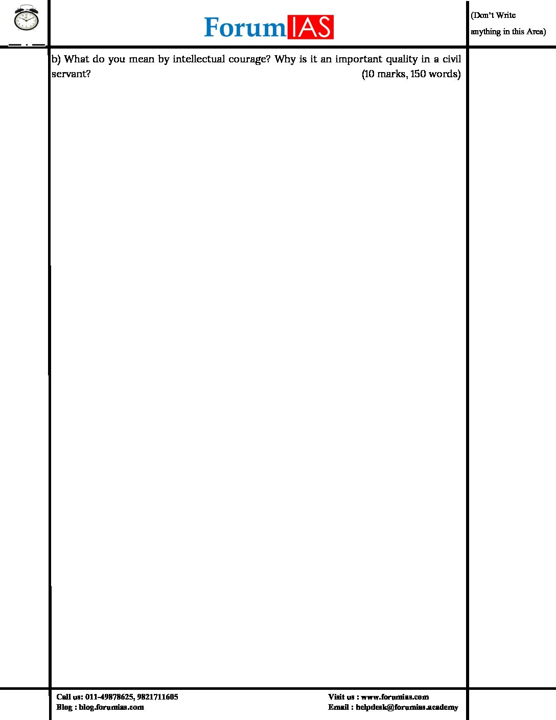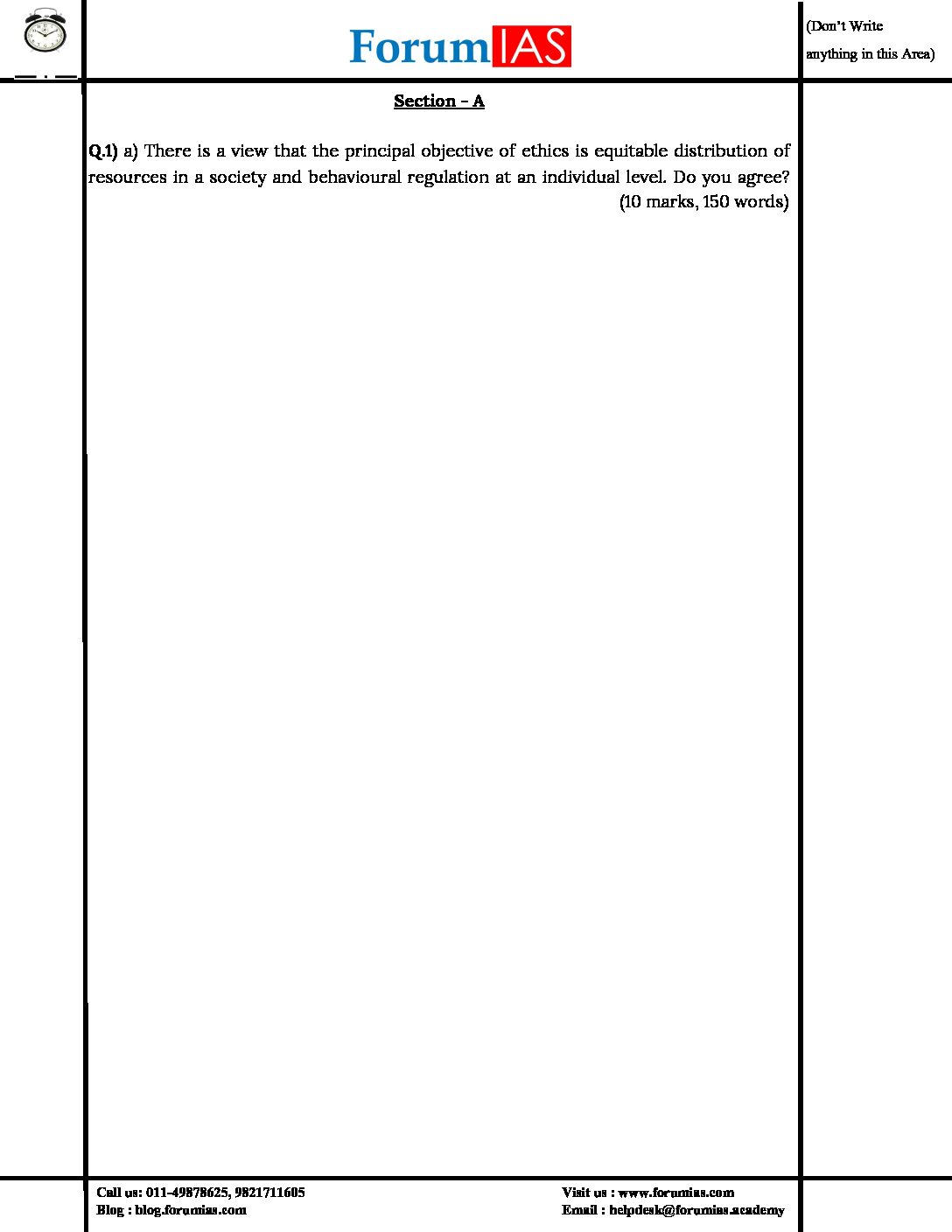 / FORUMIAS MGP 2021(COHORT 4 ) FULL LENGTH TEST-3 (2021) QUESTION-CUM-ANSWERS BOOKLET (BLACK & WHITE)