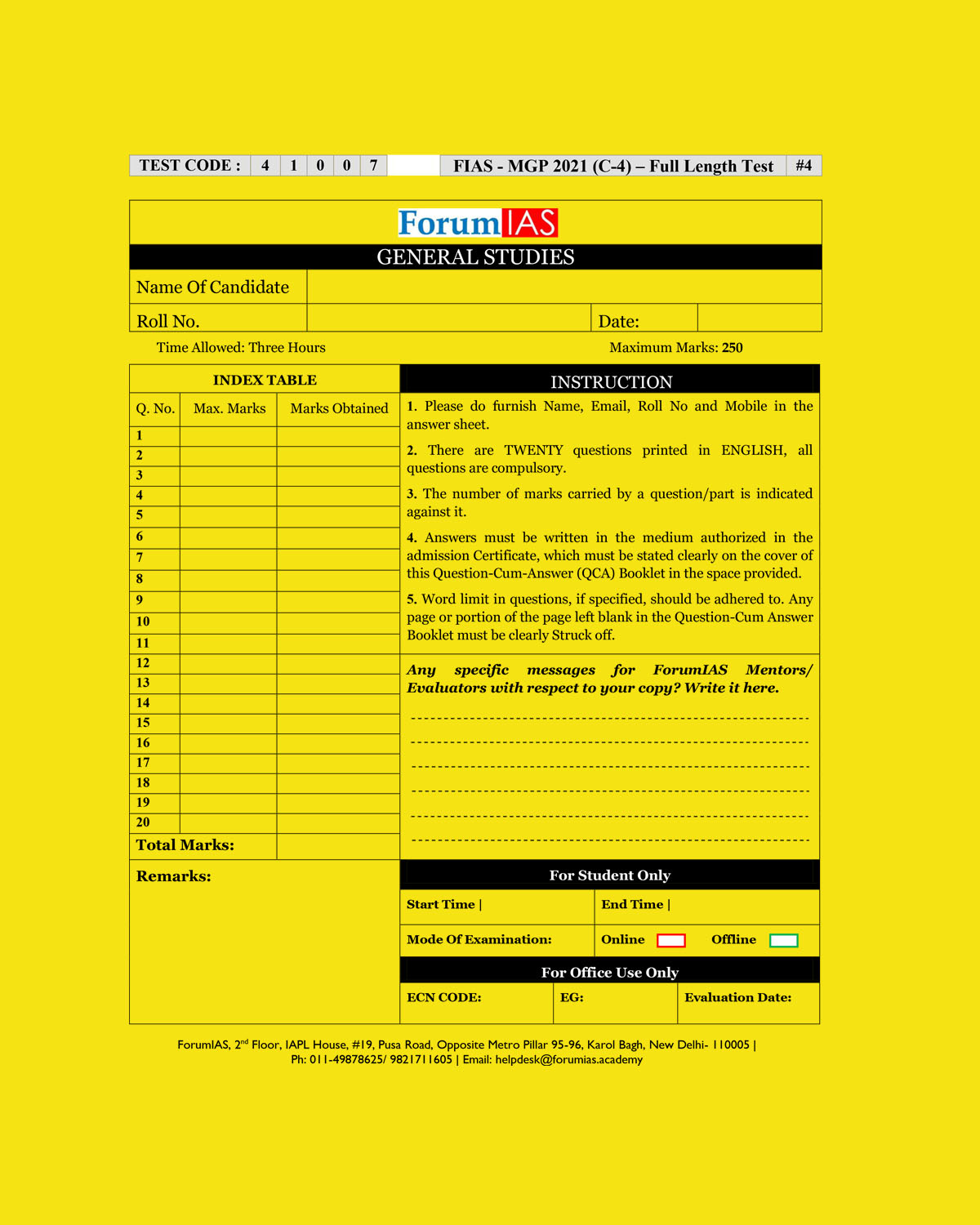 / FORUMIAS MGP 2021(COHORT 4 ) FULL LENGTH TEST-4 (2021) QUESTION-CUM-ANSWERS BOOKLET (BLACK & WHITE)