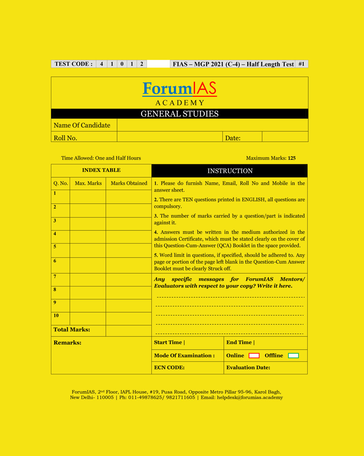 / FORUMIAS MGP 2021(COHORT 4 ) HALF LENGTH TEST-1 (2021) QUESTION –CUM- ANSWERS BOOKLET (BLACK & WHITE)