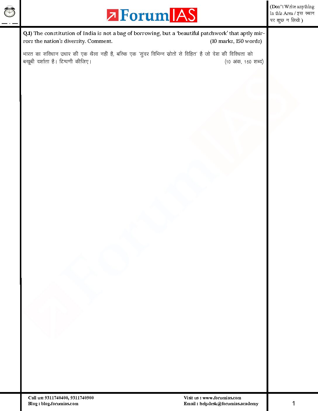 FORUM IAS MAINS GUIDANCE PROGRAM 2020 BATCH E TEST (1-6) 2020 BLACK & WHITE