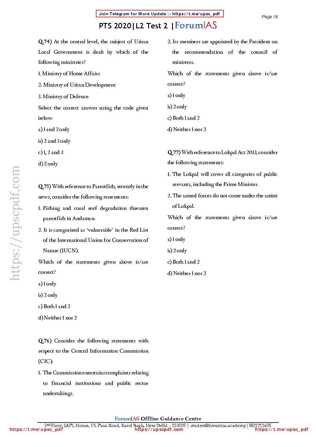 / FORUMIAS PRELIMS G.S TEST – 12 (L2 TEST – 2) – 2020