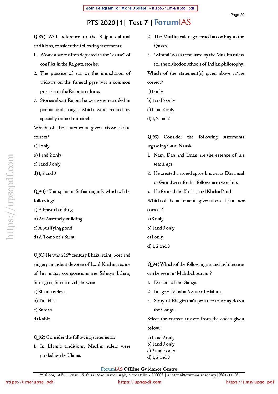/ FORUMIAS PRELIMS G.S TEST – 7 – 2020