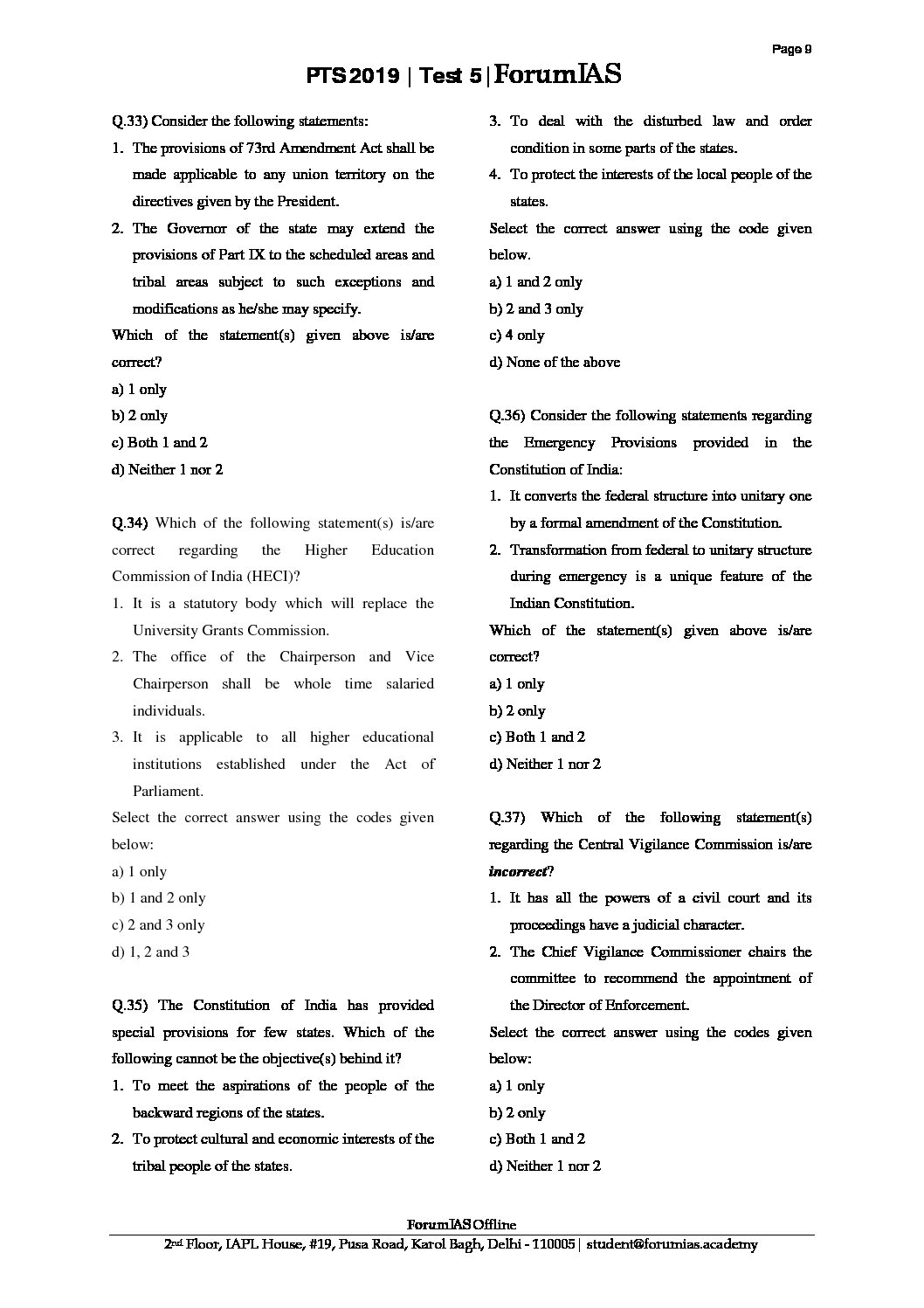 FORUMIAS PT TEST-5- WITH SOLUTION POLITY- (2019) quantity