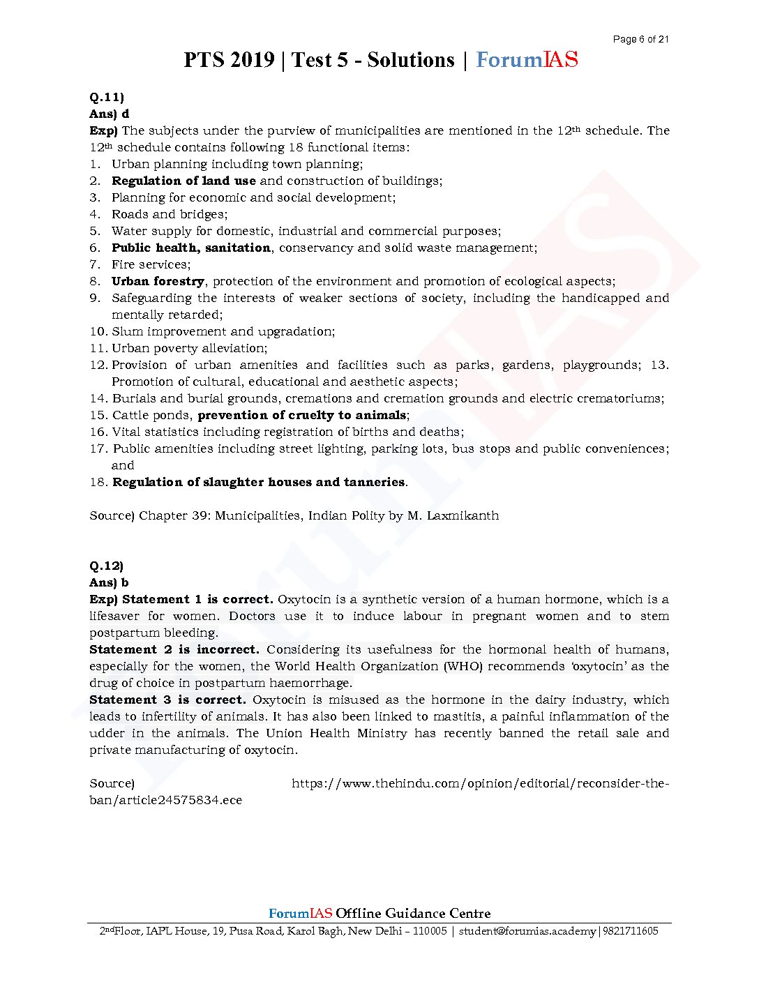/ FORUMIAS PT TEST-5- WITH SOLUTION POLITY- (2019)
