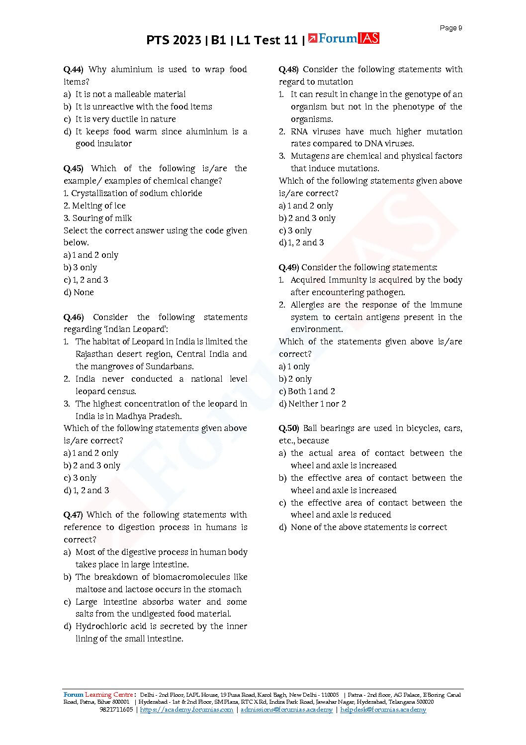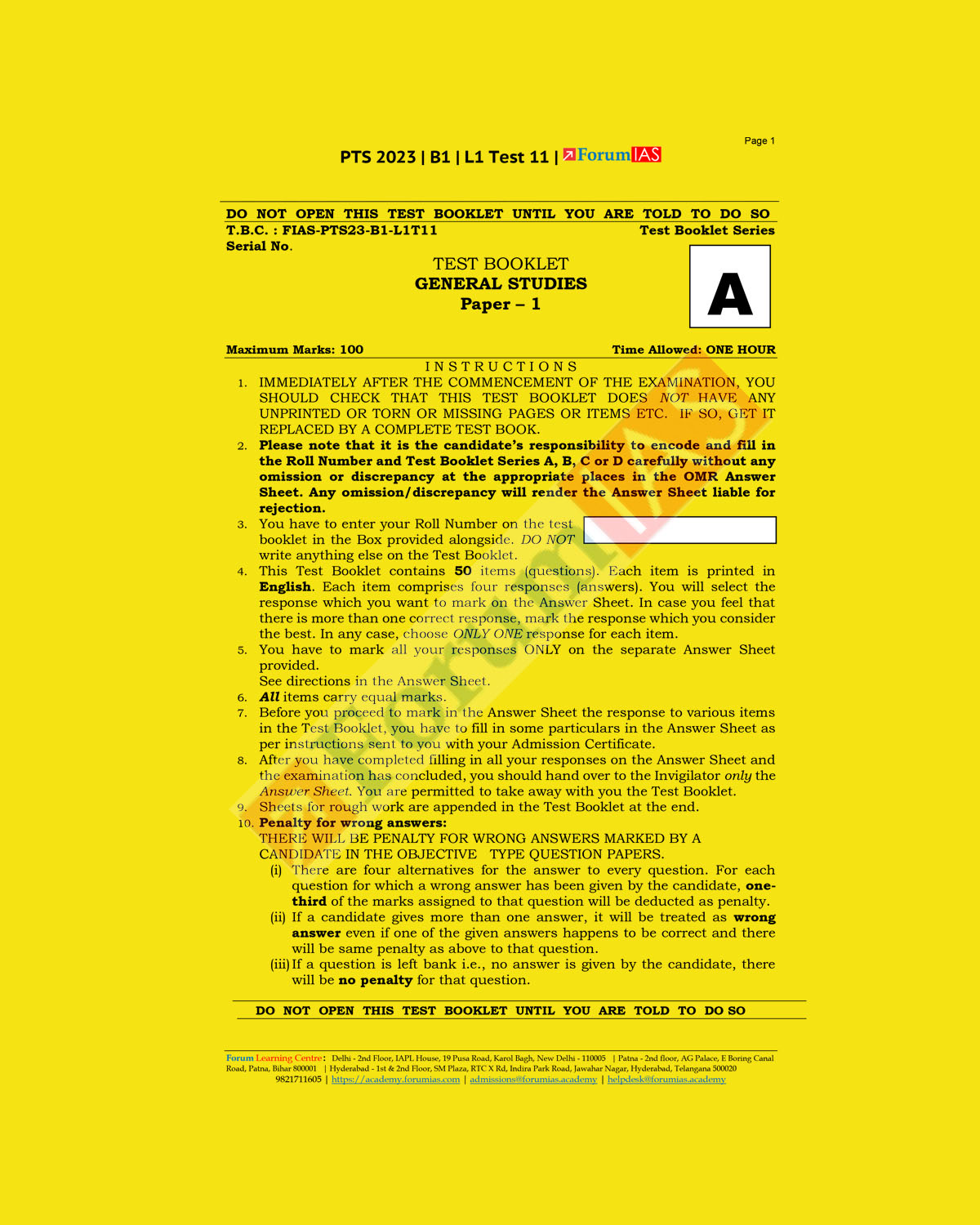 FORUMIAS PTS 2023 BATCH 1 TEST-11 (BATCH 1 LEVEL 1) (BLACK & WHITE)