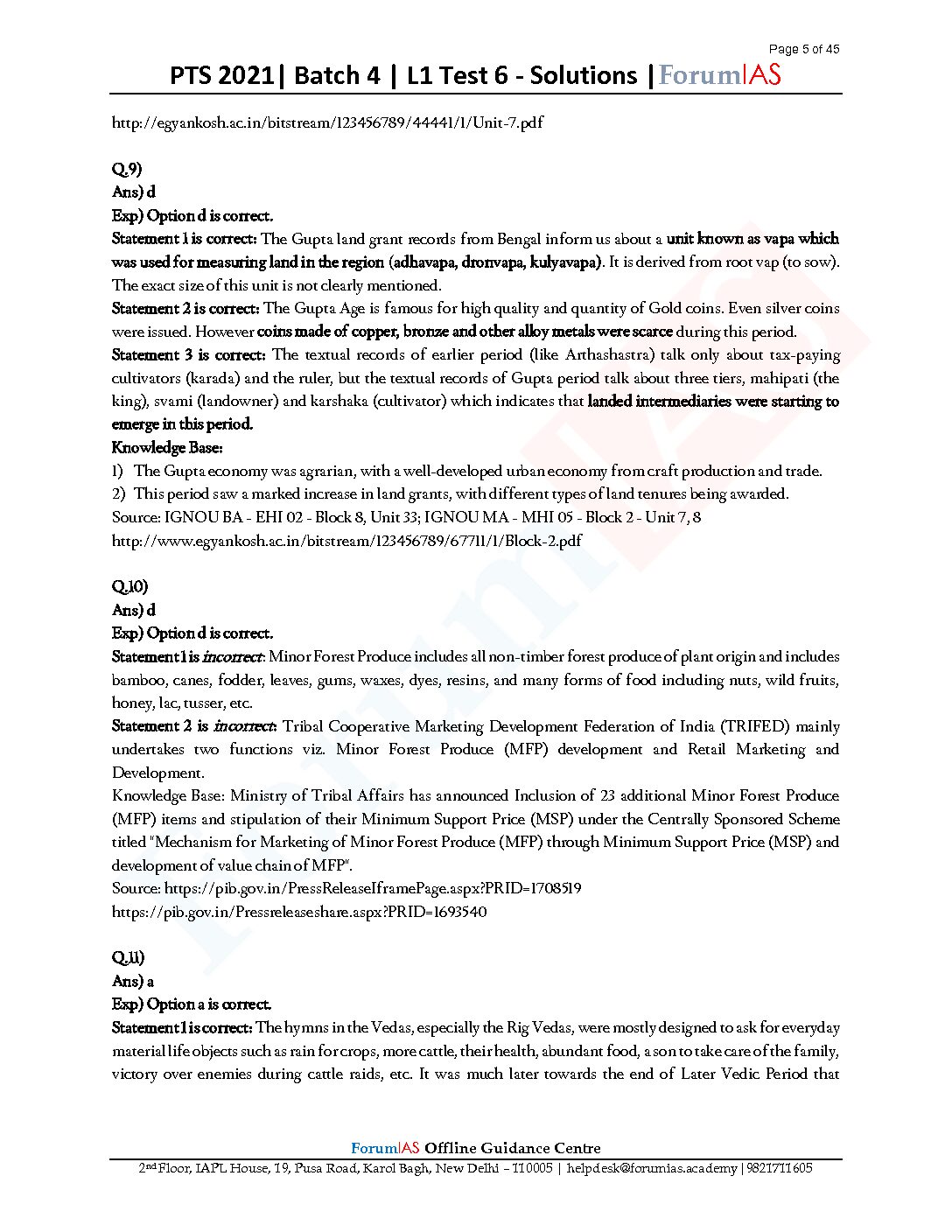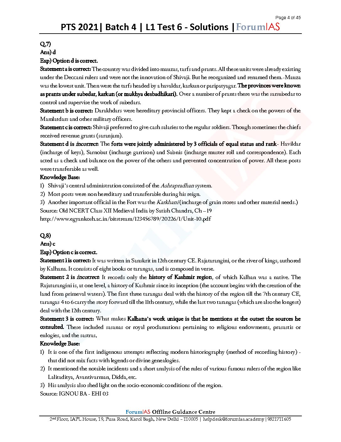 / FORUMIAS TEST BOOKLET GENERAL STUDIES PAPER – I BATCH – 4 – L1 TEST – 6 PTS 2021