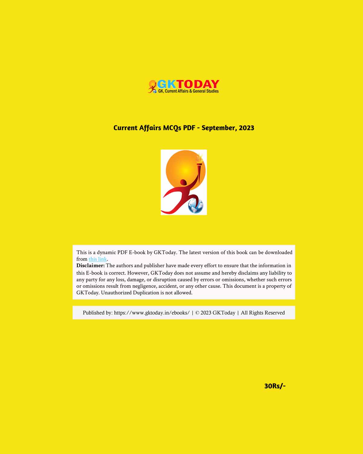 / G K TODAY CURRENT AFFAIRS QUIZ SEPTEMBER 2023 FINAL {ENGLISH} {BLACK AND WHITE}