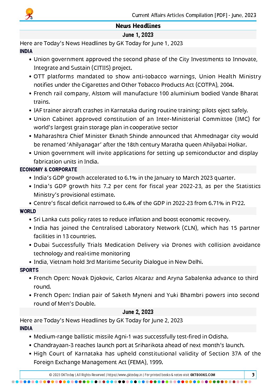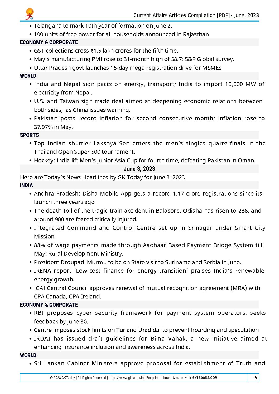 / GK TODAY CURRENT AFFAIRS JUNE ENGLISH MEDIUM 2023 (BLACK & WHITE)