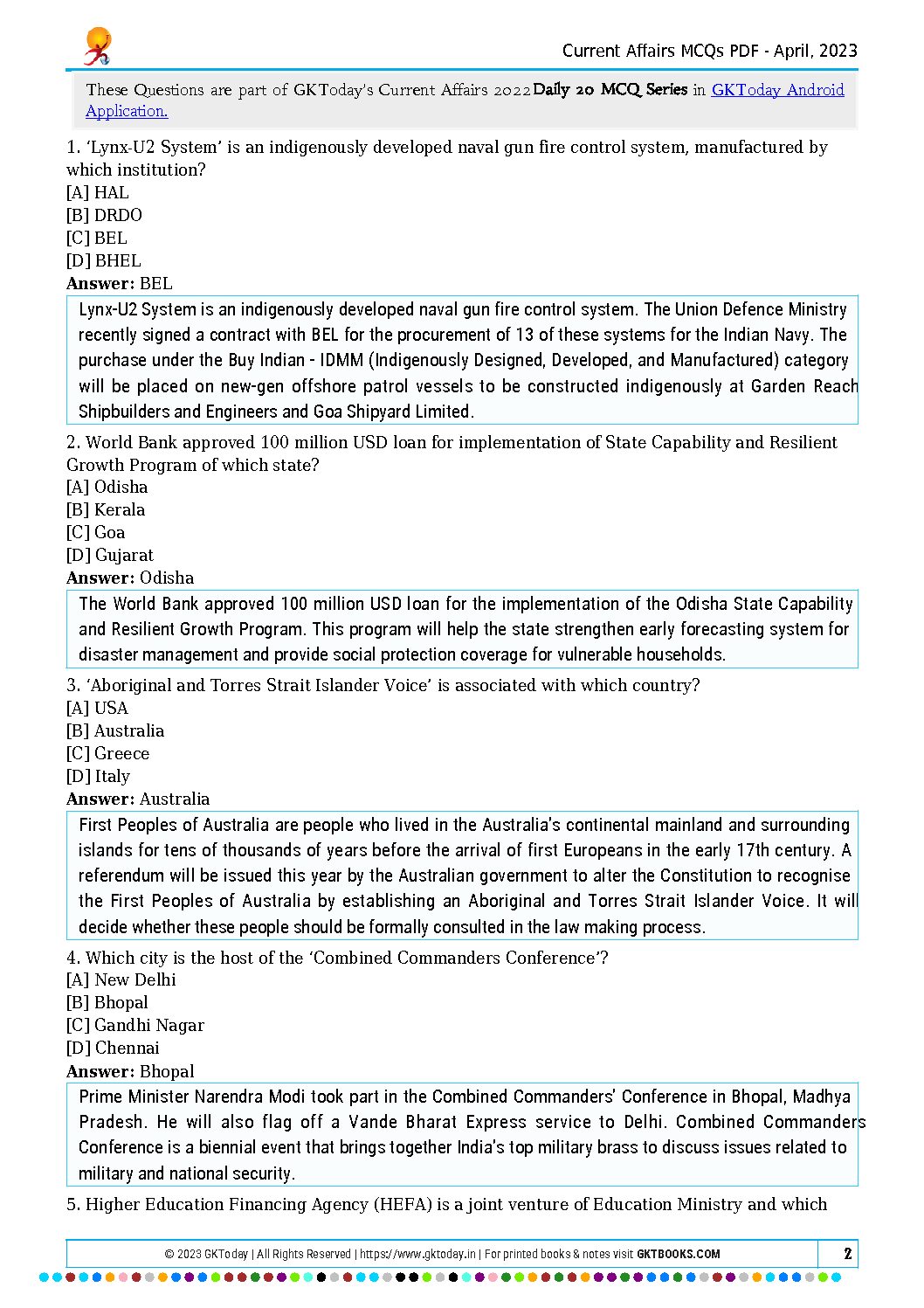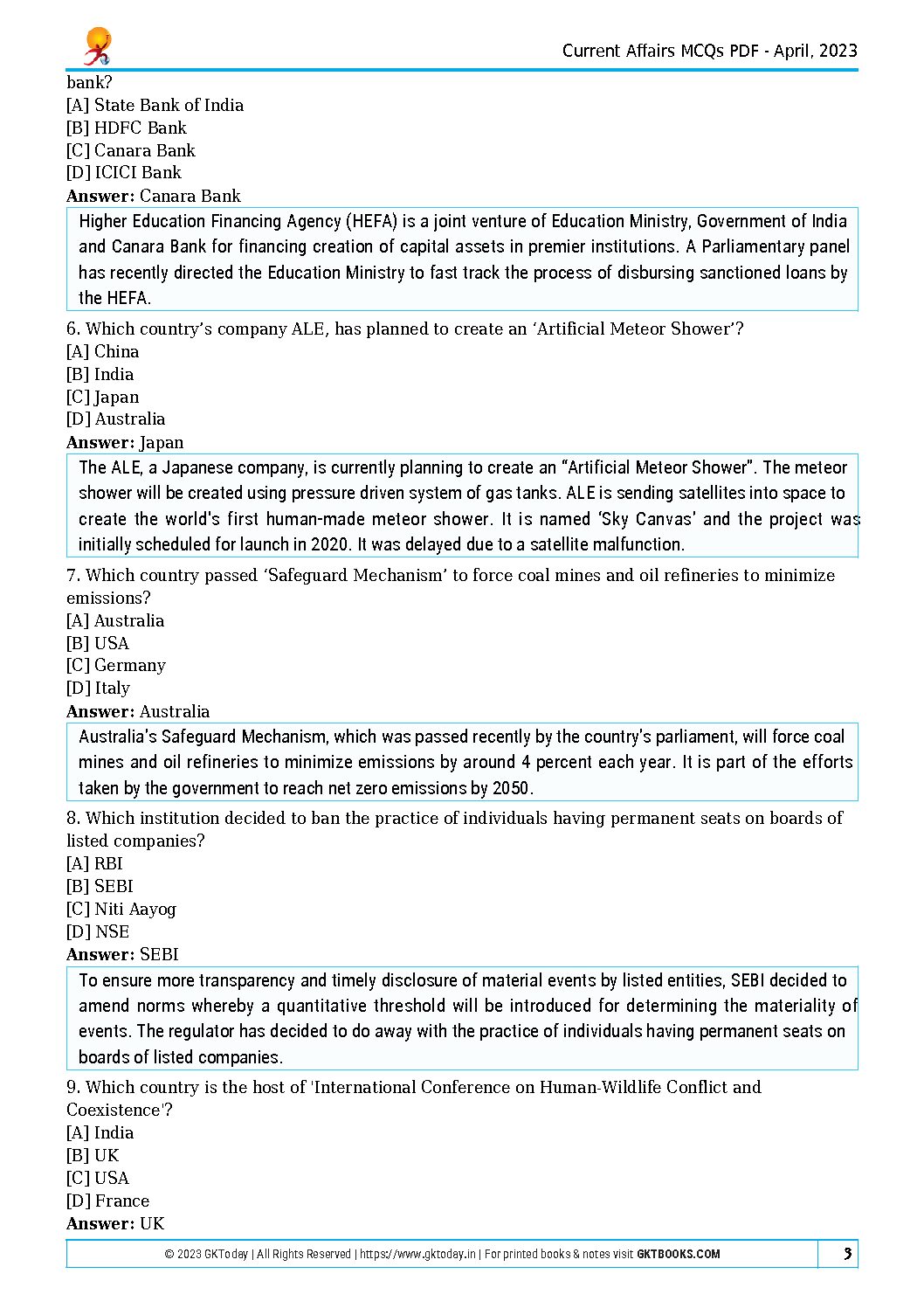 / GK TODAY CURRENT AFFAIRS QUIZ APRIL 2023 (ENGLISH MEDIUM) (BLACK & WHITE)