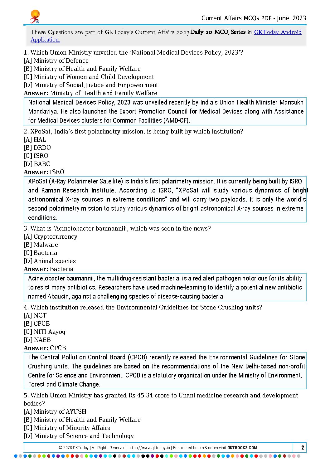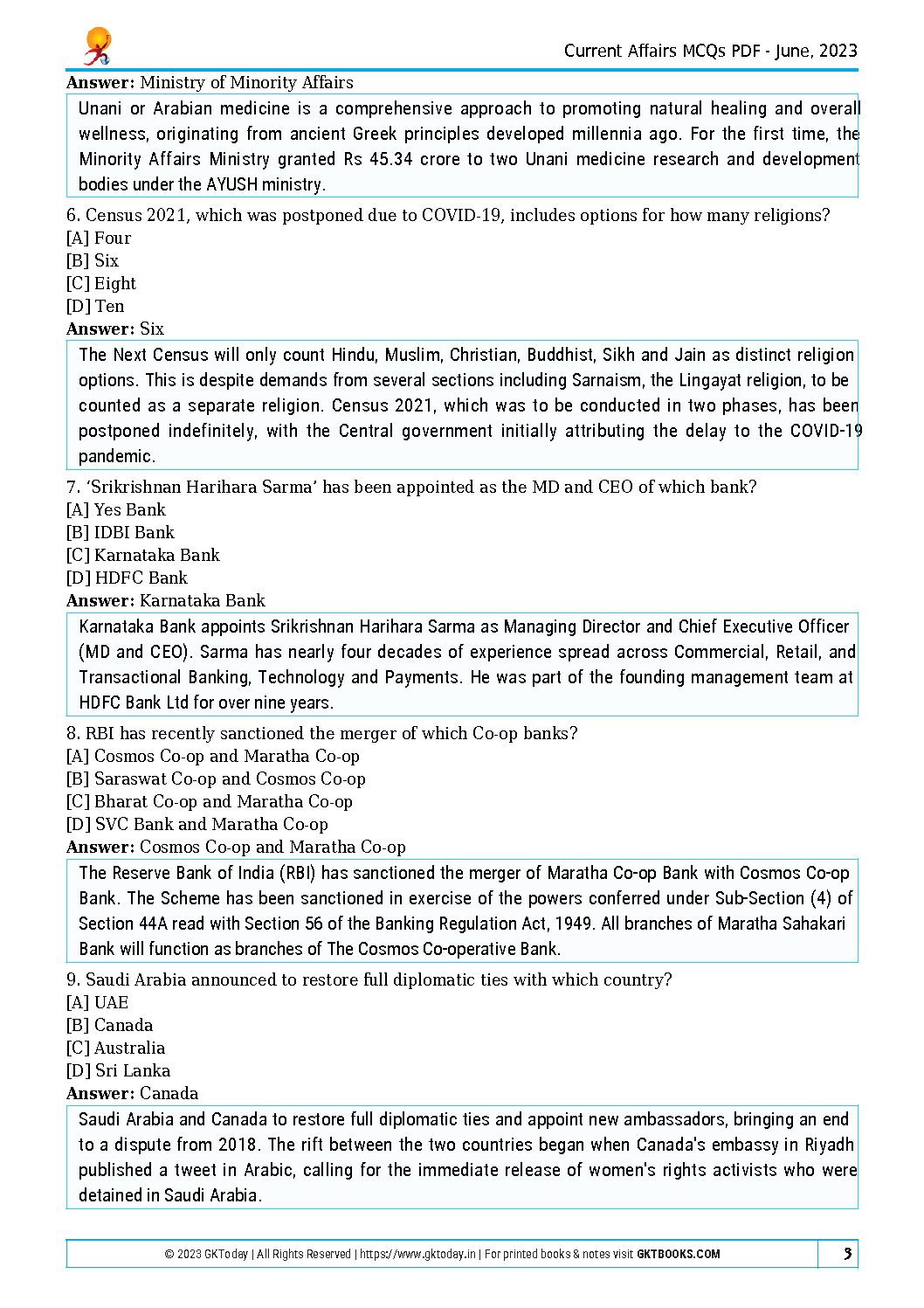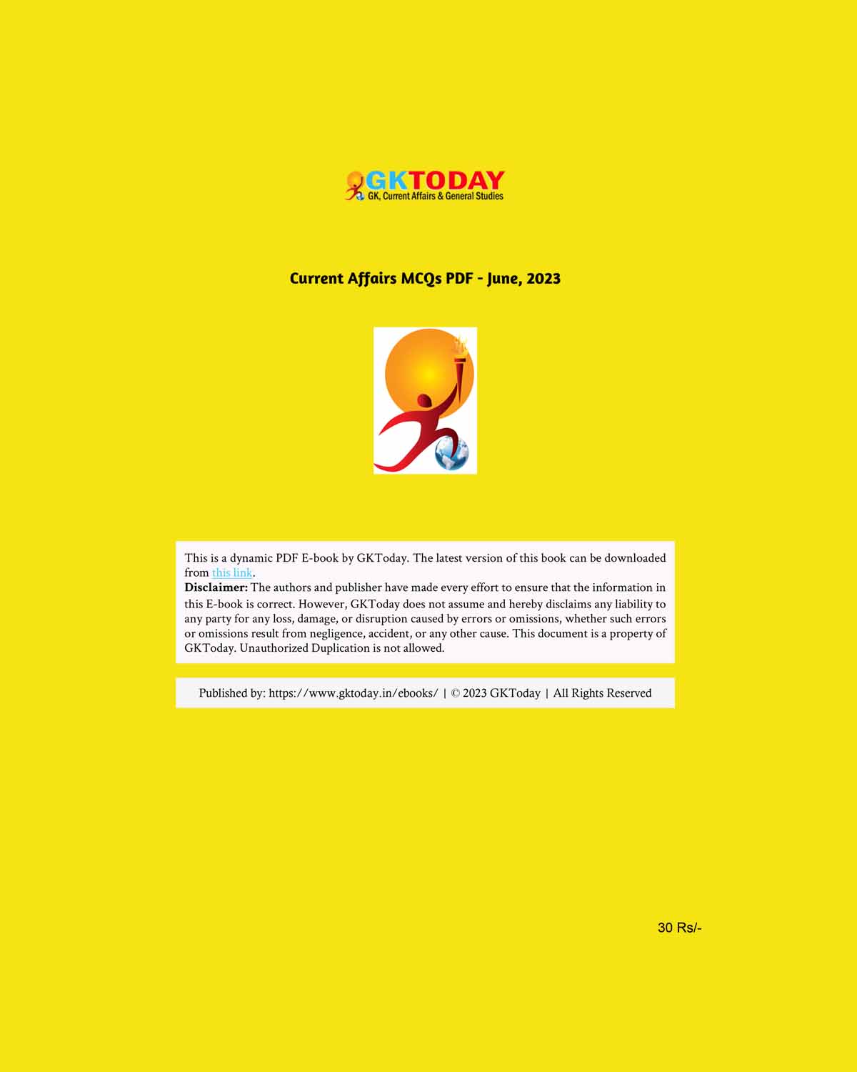 / GK TODAY QUIZ JUNE 2023 ENGLISH MEDIUM (BLACK & WHITE)