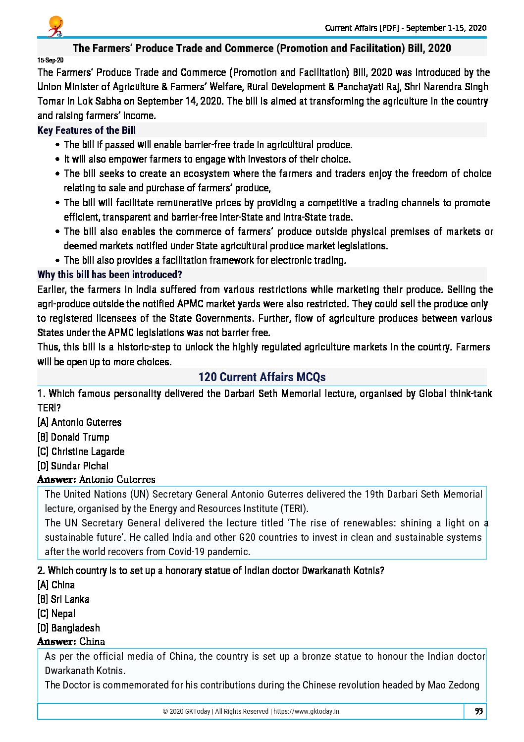 / GKTODAY CURRENT AFFAIRS QUIZ SEPTEMBER 2020 (BLACK & WHITE)