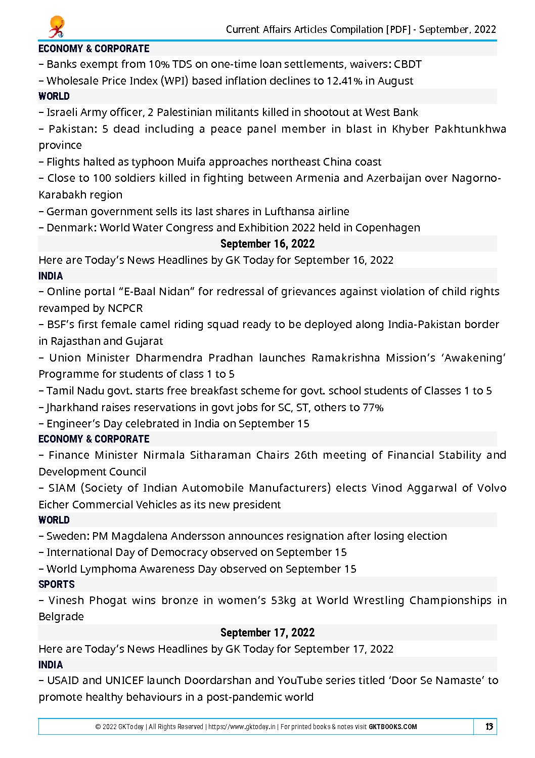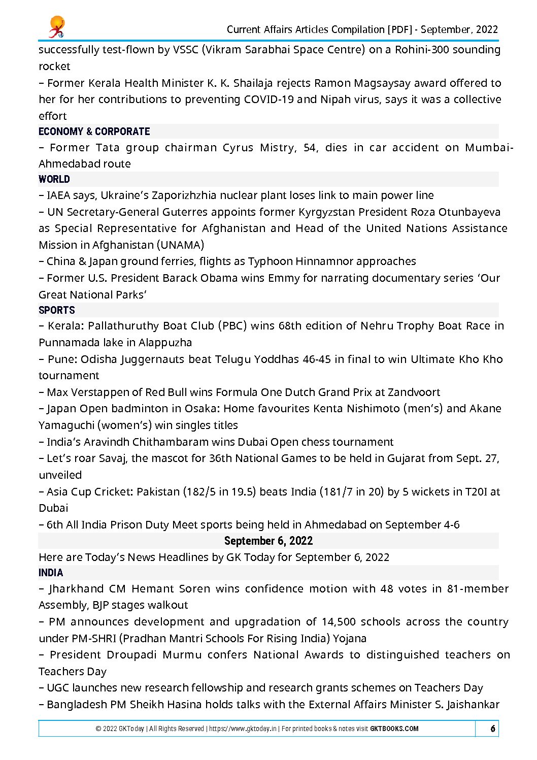 / GKTODAY CURRENT AFFAIRS COMPILATION PDF SEPTEMBER 2022 (BLACK & WHITE)T- 2022 (BLACK & WHITE)