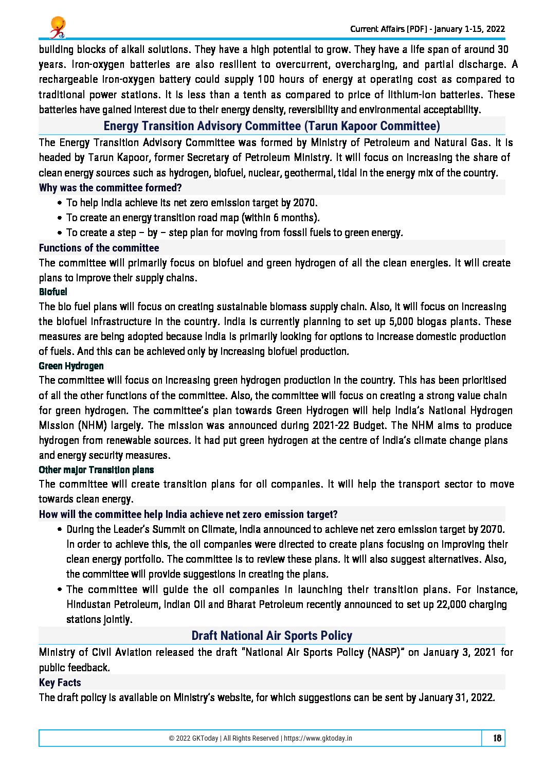 / GKTODAY CURRENT AFFAIRS JANUARY 2022 (BLACK & WHITE)