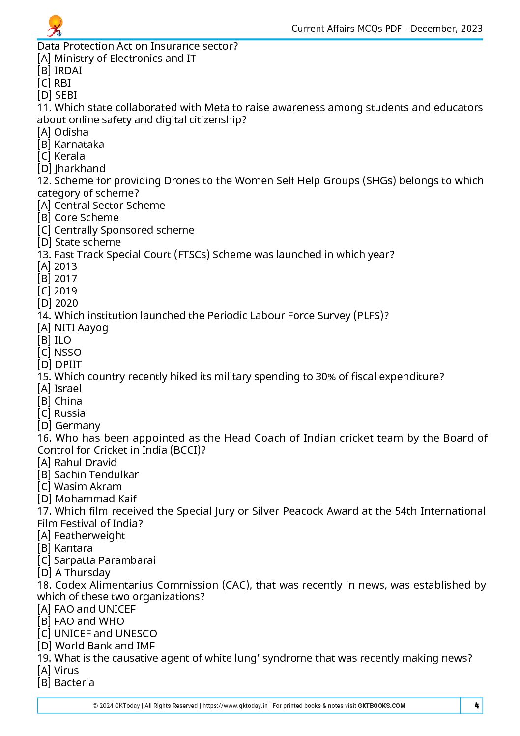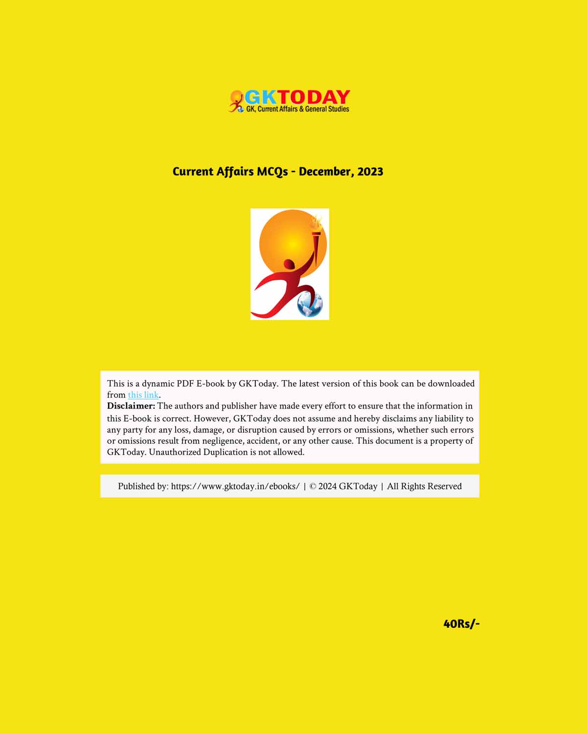 GKTODAY CURRENT AFFAIRS MCQ DECEMBER 2023 FINAL ENGLISH {BLACK AND WHITE} quantity