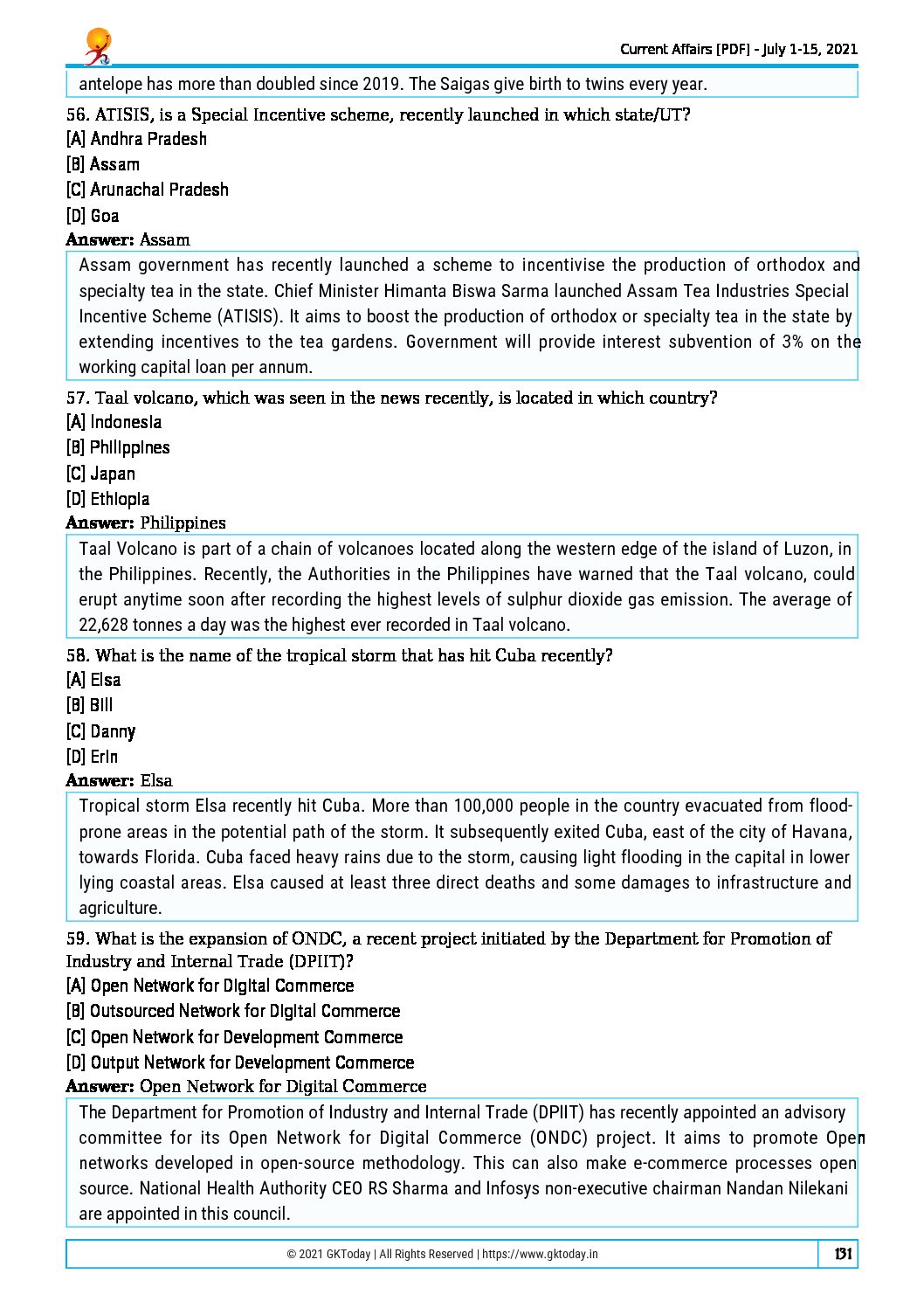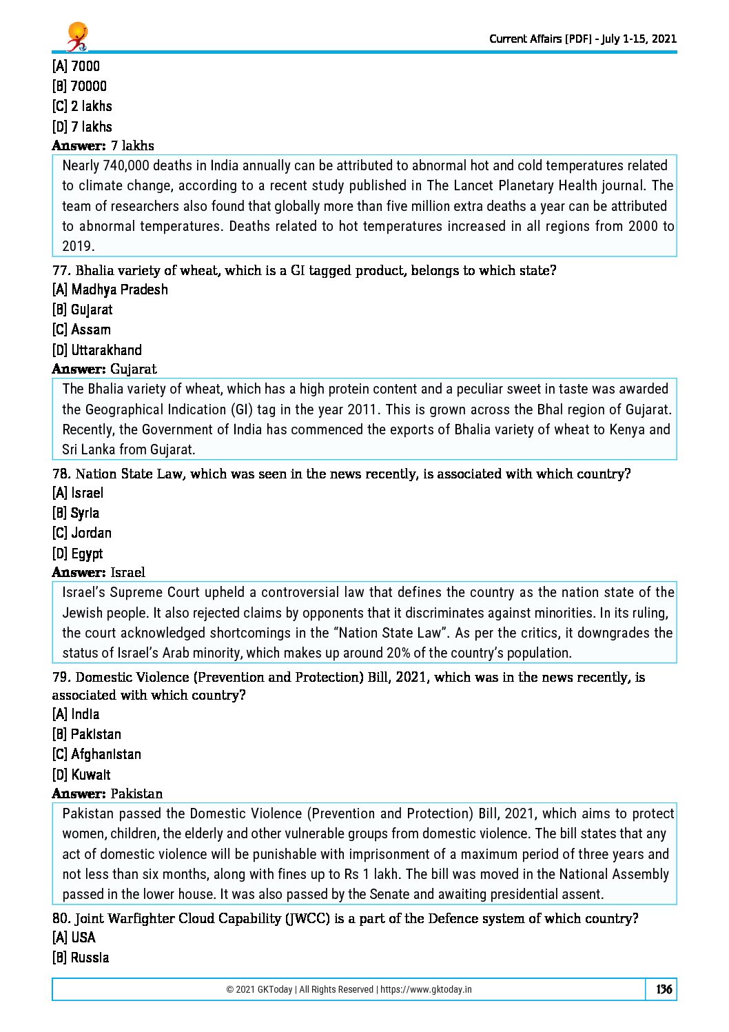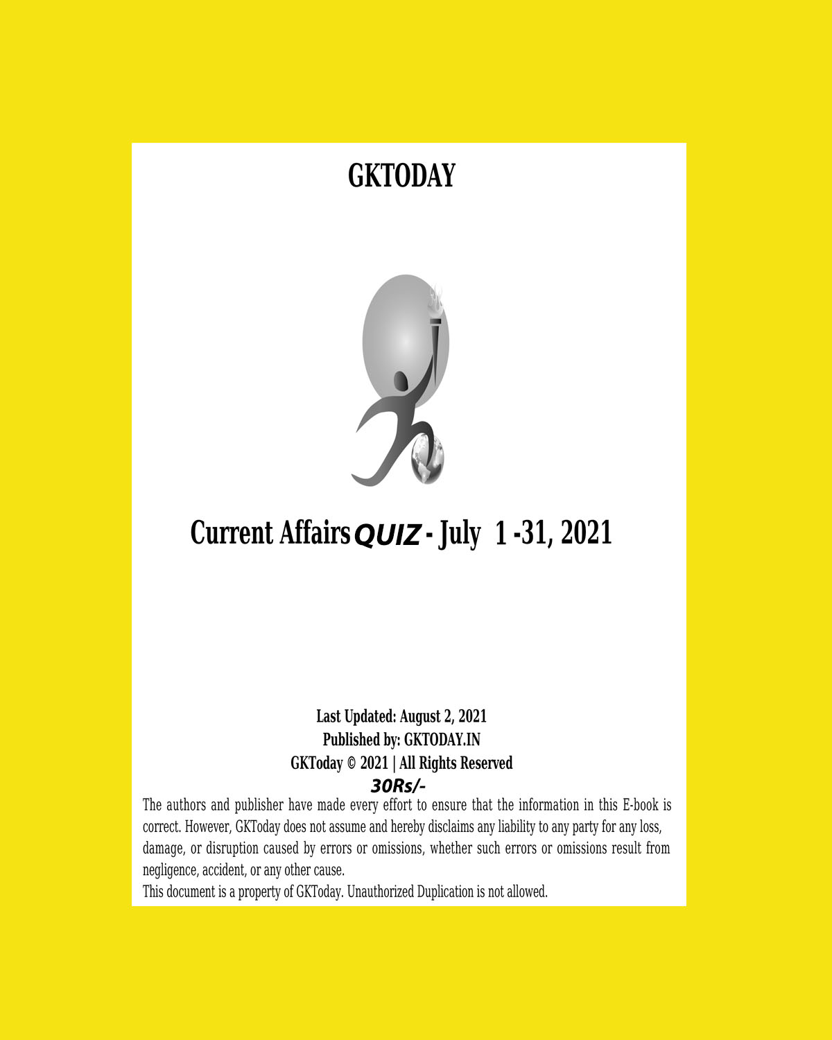 / GKTODAY CURRENT AFFAIRS QUIZ JULY 2021 (BLACK & WHITE)